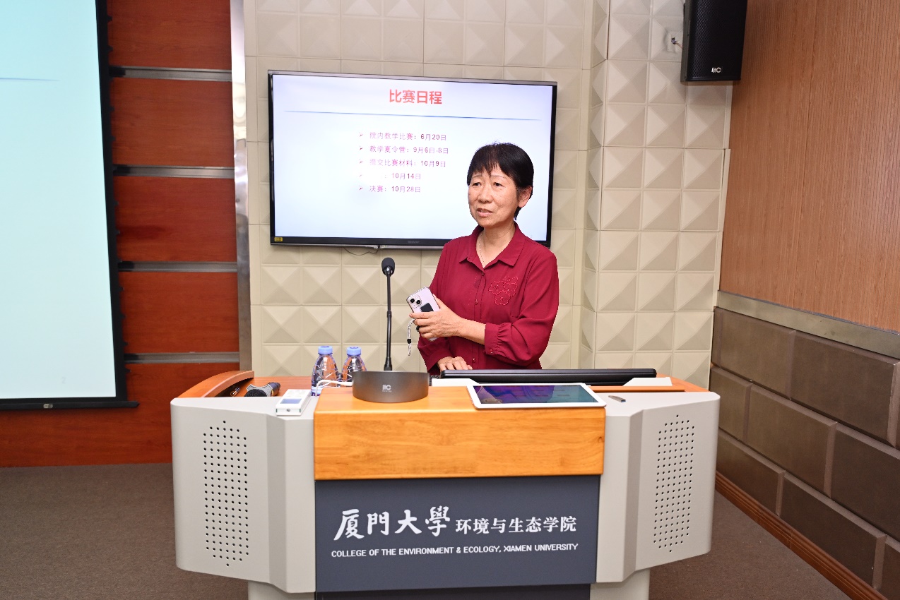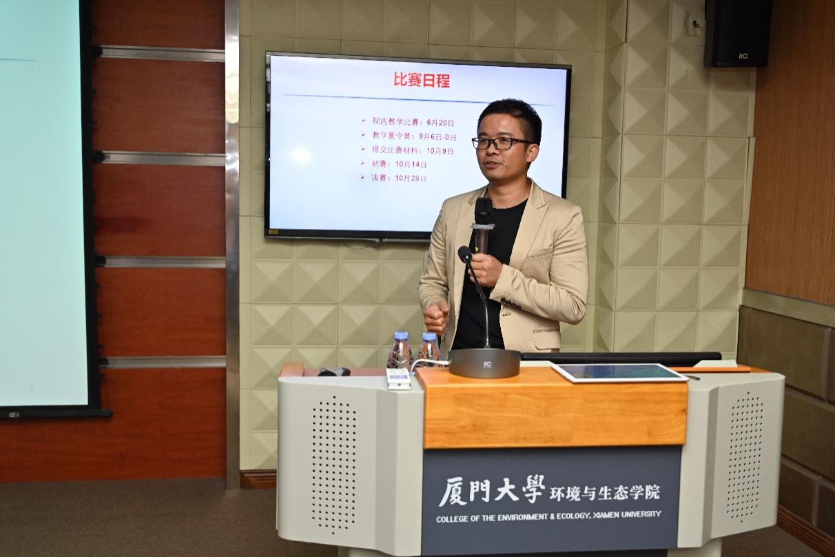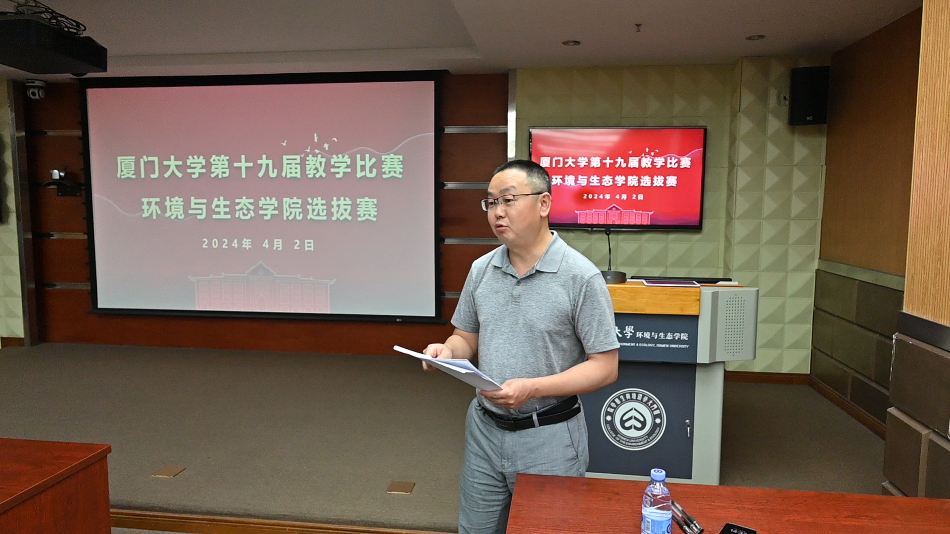 比赛正式开始后,来自环境科学系谢敏伟、朱宝彤,生态学系刘文文、刘凯琳,环境与生态工程系曾华斌五位教师依次登台。在20分钟的课堂片段教学时间里,他们展示精心准备的课件,侃侃而谈,挥洒自如,各具特色,充分展示了扎实的教学基本功及良好的教师职业素质。
