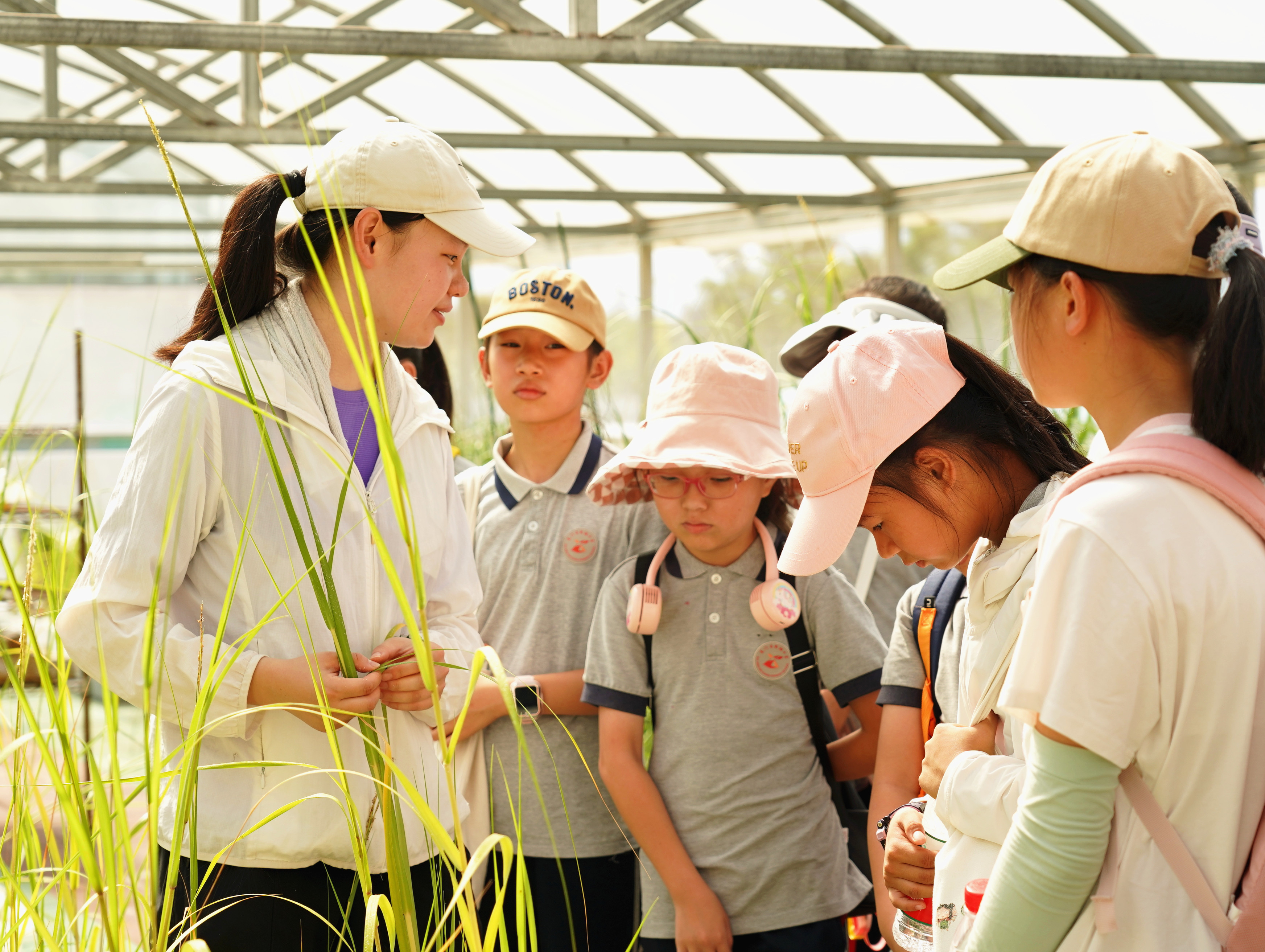 郑陈娟带领同学们参观了滨海湿地全球变化温室群,为同学们介绍了全球变化、气候变化等热点知识,引导同学们了解滨海湿地全球变化温室群支撑的科学问题、研究思路和实验设计,激发同学们科学兴趣。