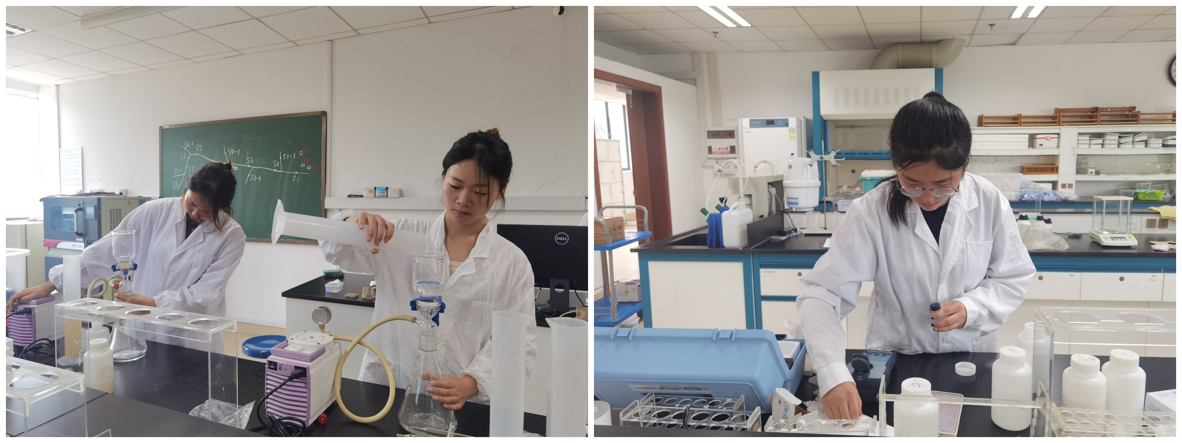 28日上午,同学们再次分组行动,在枫埔溪流域设定的采样点进行了水样采集工作。采样过程中,各组同学分工合作,严格按照操作规程进行现场环境指标监测和水样采集。下午,满载而归的同学们返回学校,并着手进行样品的前处理和分析工作。
