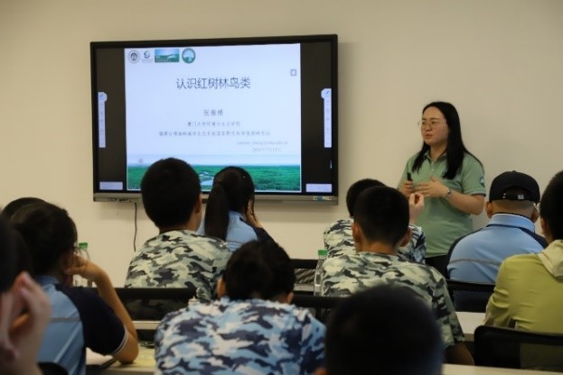 在厦门下潭尾红树林生态区,实践队了解了“院士实验林”“福建省最大人工重构红树林”和“金砖碳中和林”若干亮点项目。红树林不仅仅是湿地植被,还是多种珍稀野生动植物栖息地,是维持海洋生态平衡的重要组成部分。漫步其间,实践队成员不仅亲眼目睹了多种底栖生物,如形态各异的招潮蟹和活泼的跳跳鱼,还幸运地观测到了白鹭等鸟类在此栖息。这些珍贵的动植物资源既是自然界的宝贵组成,也是大自然对人类的慷慨馈赠。未来,红树林的保护与修复行动需更加稳步坚实地推进,着重提升红树林湿地生态系统的多样性、稳定性和可持续性,致力于打造以红树林生态系统为核心的生态岸线景观。