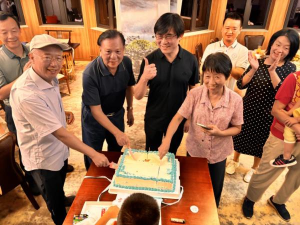 当晚,同学们邀请中科院院士、海洋与地球学院教授戴民汉,原海洋与环境学院院长袁东星和嘉庚学院环境科学与工程学院院长卢昌义等老师参加了“再回首•忆当年”聚会,分享了毕业二十年纪念蛋糕,向伟大祖国献上生日祝福!