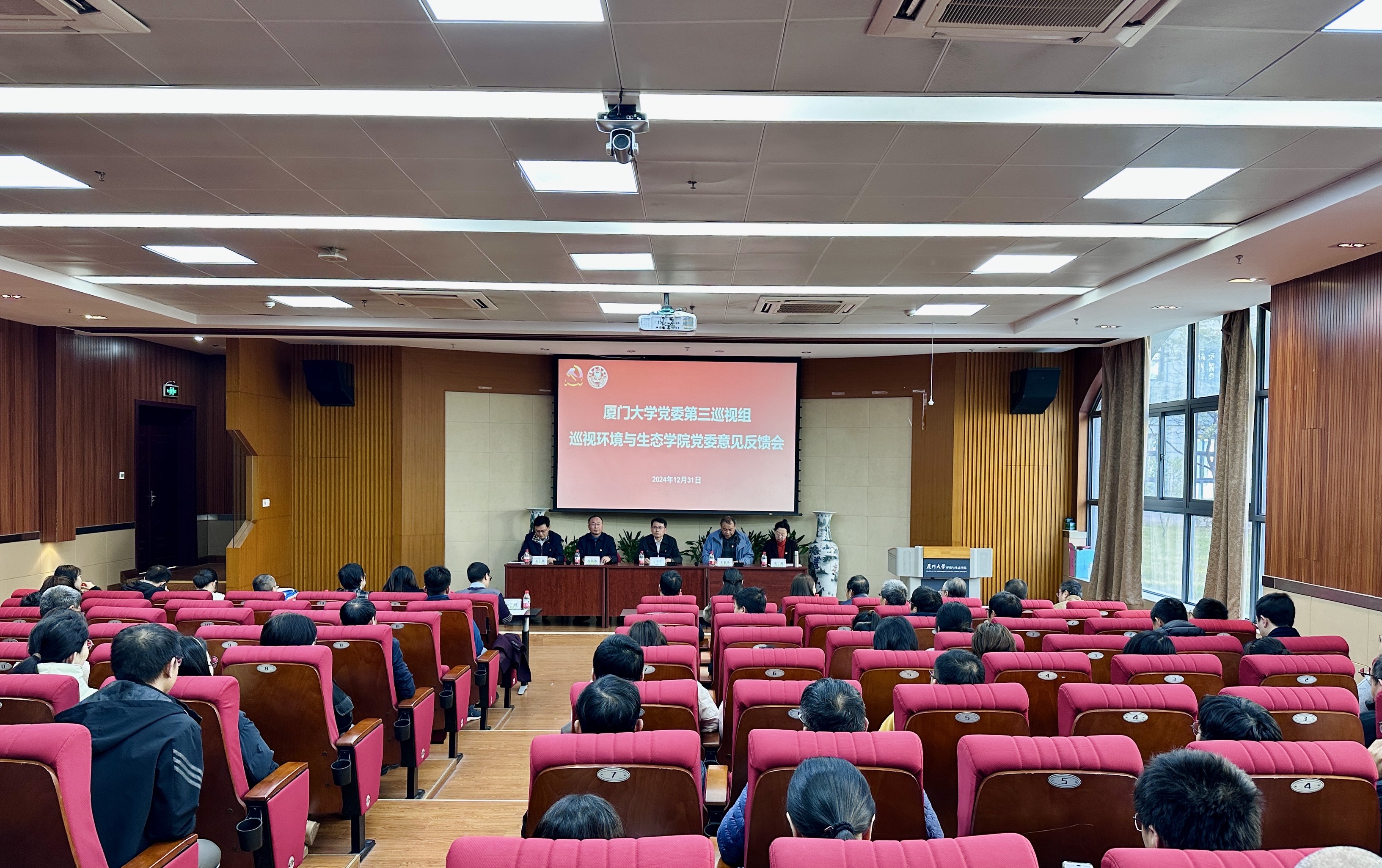 12月31日下午,校党委第三巡视组巡视环境与生态学院党委意见反馈会在金泉楼B103报告厅召开,校党委副书记、纪委书记、国家监委驻厦门大学监察专员黄身勇,校党委第三巡视组组长王康平、副组长范丽、校党委组织部干部工作办公室主任赵智超、校纪检监察机构干部陈萌艳等出席反馈会议。会议由学院党委书记王晟主持。学院全体教职工参加会议。