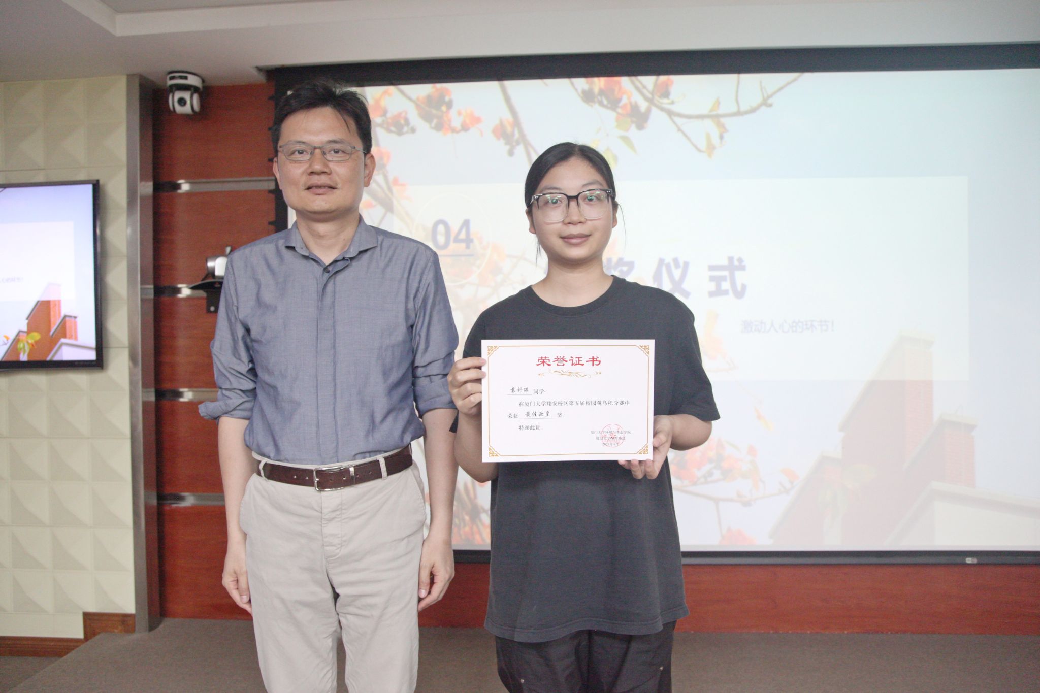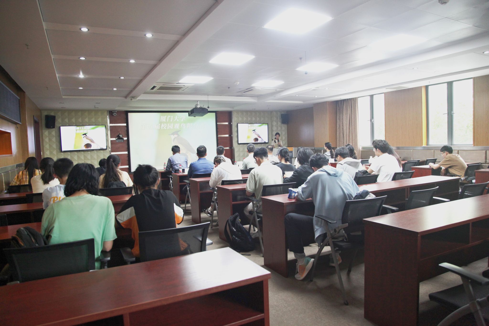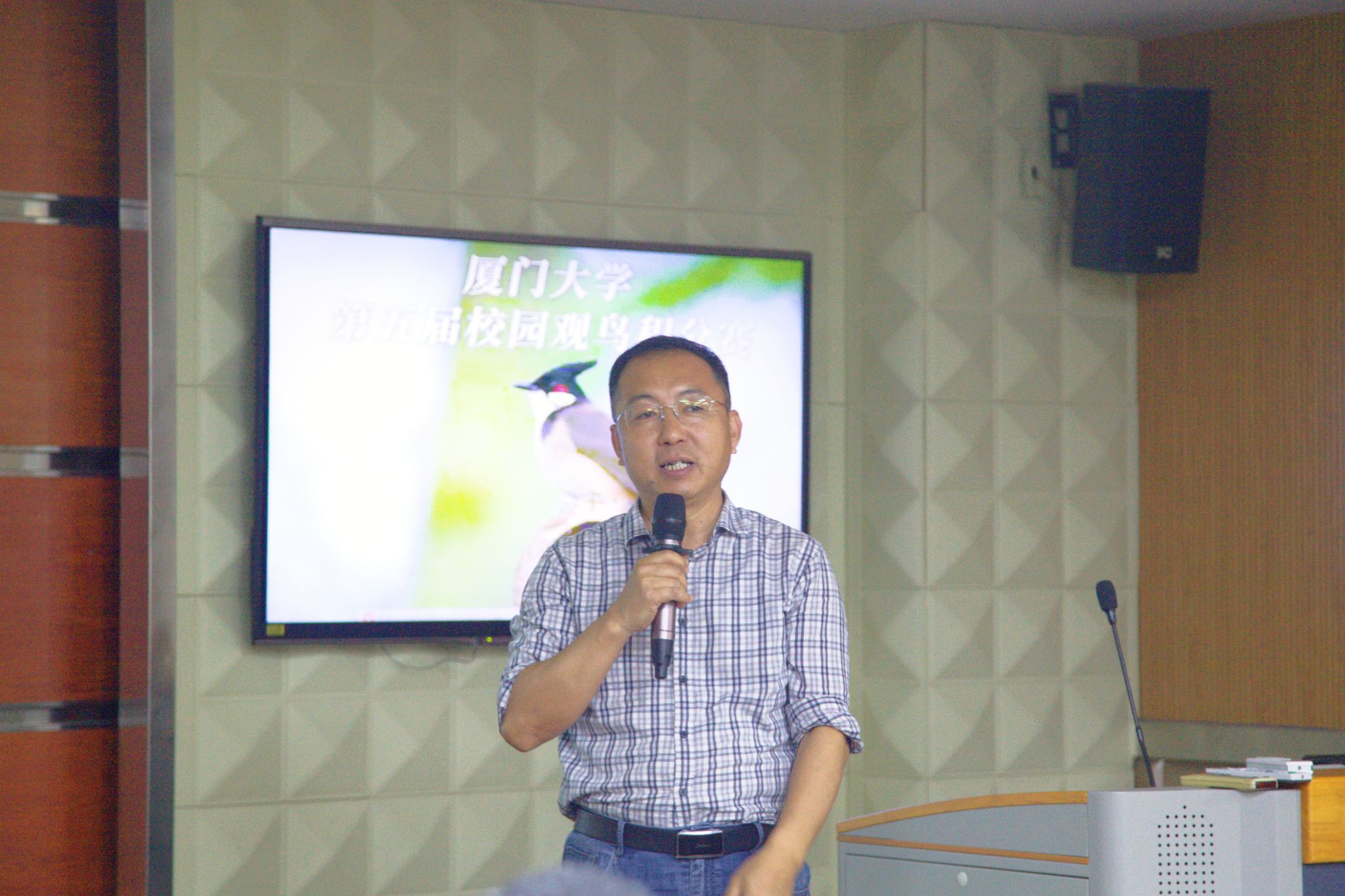 4月23日中午,厦门大学翔安校区第五届校园观鸟积分赛闭幕暨颁奖典礼在环境与生态学院隆重举行。本次赛事由环境与生态学院、翔安校区教务办、厦门大学校园“多维度”生态环境调查创新实践平台联合主办,厦门大学绿野协会承办,吸引了来自全校各院系的52名选手参赛,创下历届参赛人数新高,充分展现了厦大学子对生态保护的关注。翔安校区管委会副主任刘俊杰,环境与生态学院党委书记王晟、副院长黄凌风、党委副书记蔡虎堂等领导老师出席了此次活动。活动由2024级本科生陶慧慧主持。