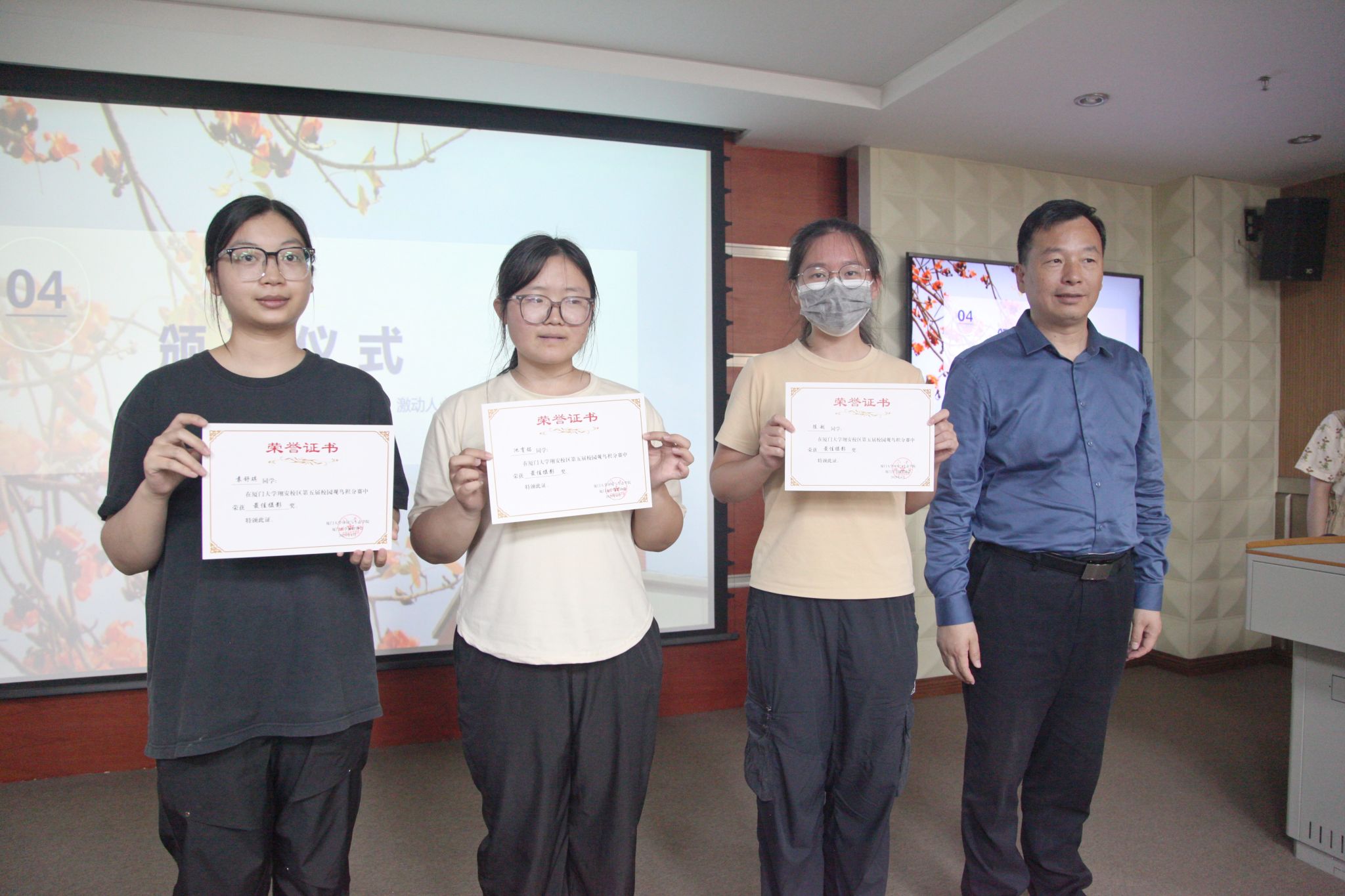 在热烈的掌声中,领导老师们为获奖同学颁发奖状与奖品,现场洋溢着喜悦与自豪的氛围。