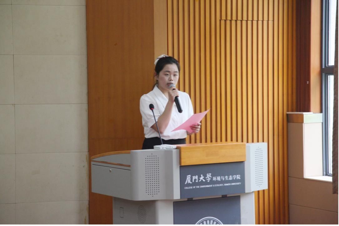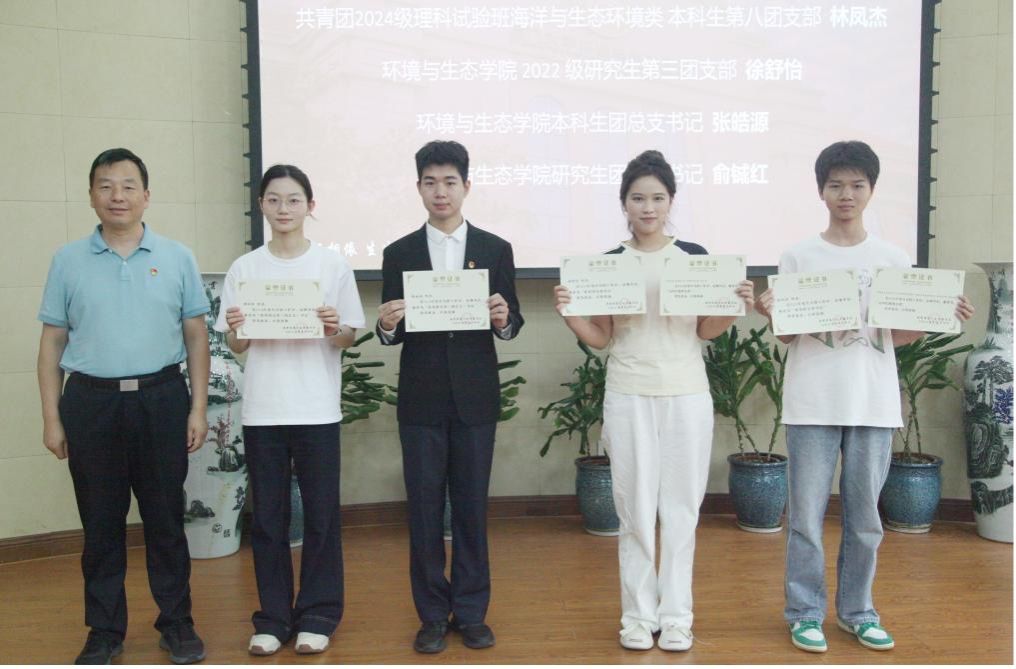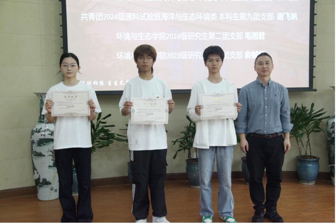 随后,黄怡平和肖莉君为“生态先锋奖”颁奖,曹京柱为“先锋支部奖”颁奖,朱祎濛、王旖旎为“2024年度厦门大学优秀共青团员”颁奖,蔡虎堂为“2024年度厦门大学五四红旗团支部及优秀团支部书记”颁奖。