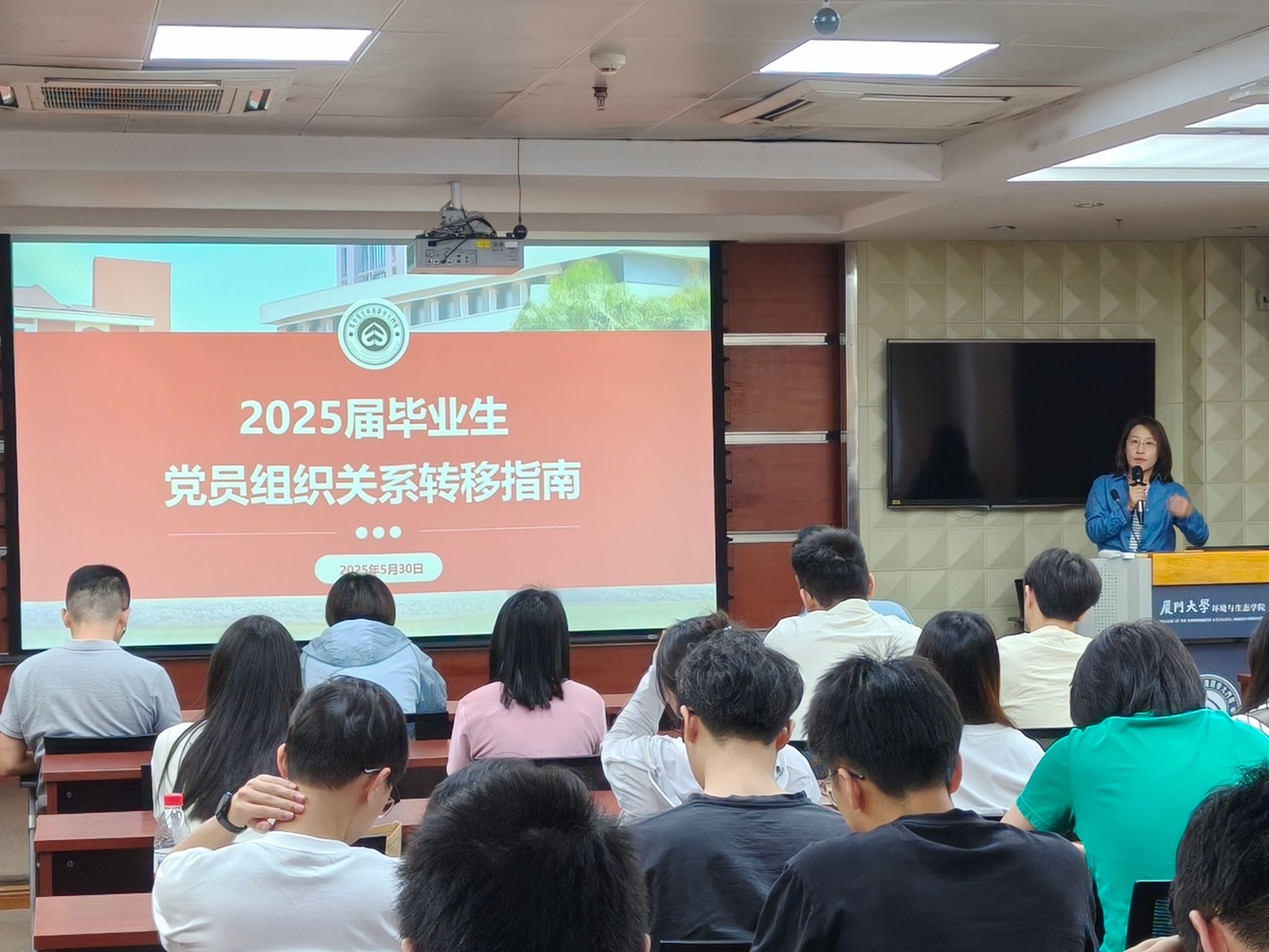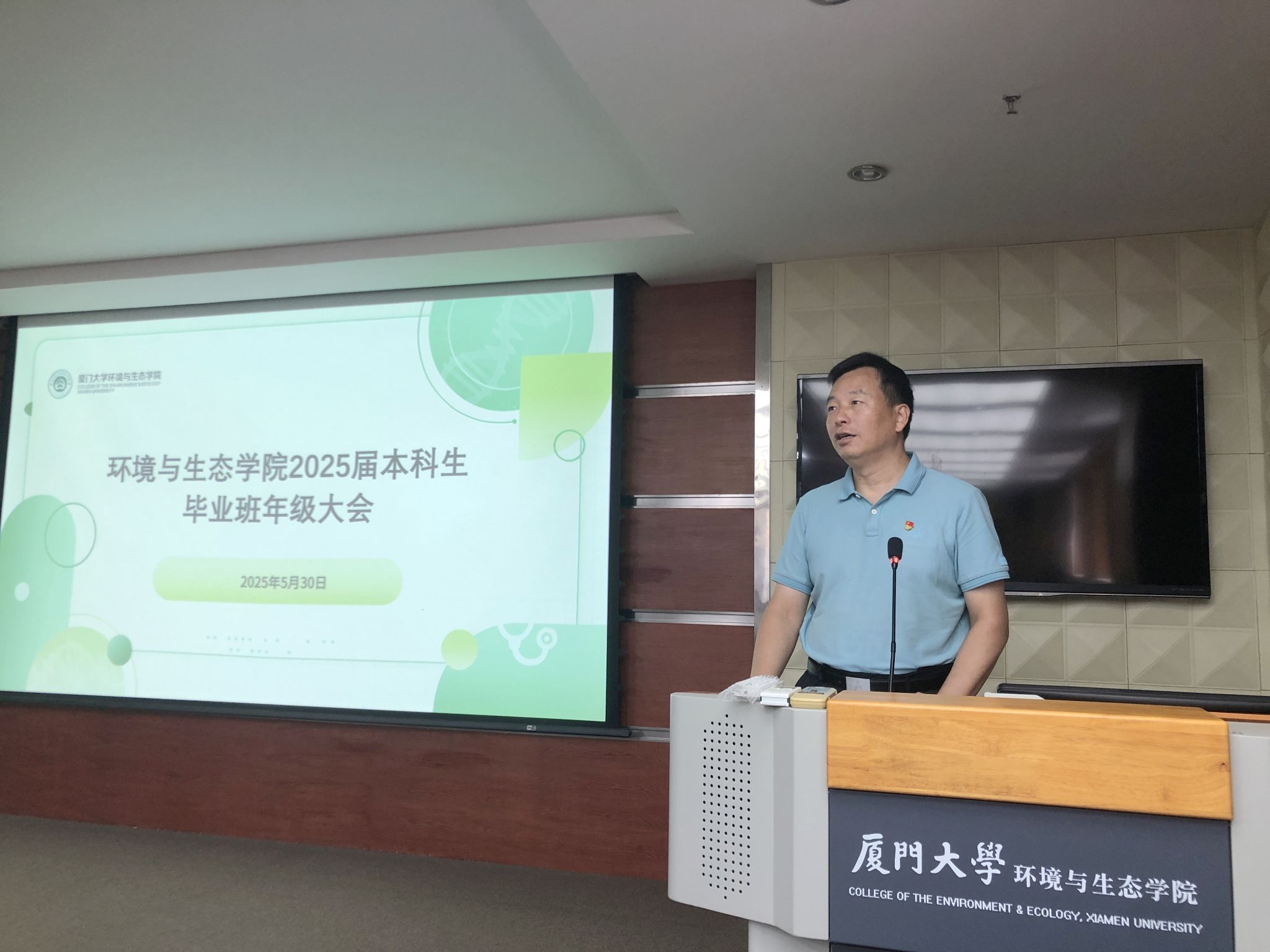 蔡虎堂作总结讲话。他叮嘱同学们作为党和国家培养的人才,首先要坚定理想信念,筑牢精神之基,以坚定的理想信念为灯塔,照亮自己前行的道路。随后他又从站好校园生活的最后一班岗,在时代坐标系中校准人生航向等方面,要求大家要守住纪律的标尺,做遵守党纪党规、校纪校规的表率。同时立足毕业生发展需求,从学业规划、职场储备、角色转换等维度,他寄语同学们坚守厦大环生人肩上承担的重要使命,为推进美丽中国建设贡献智慧和力量。