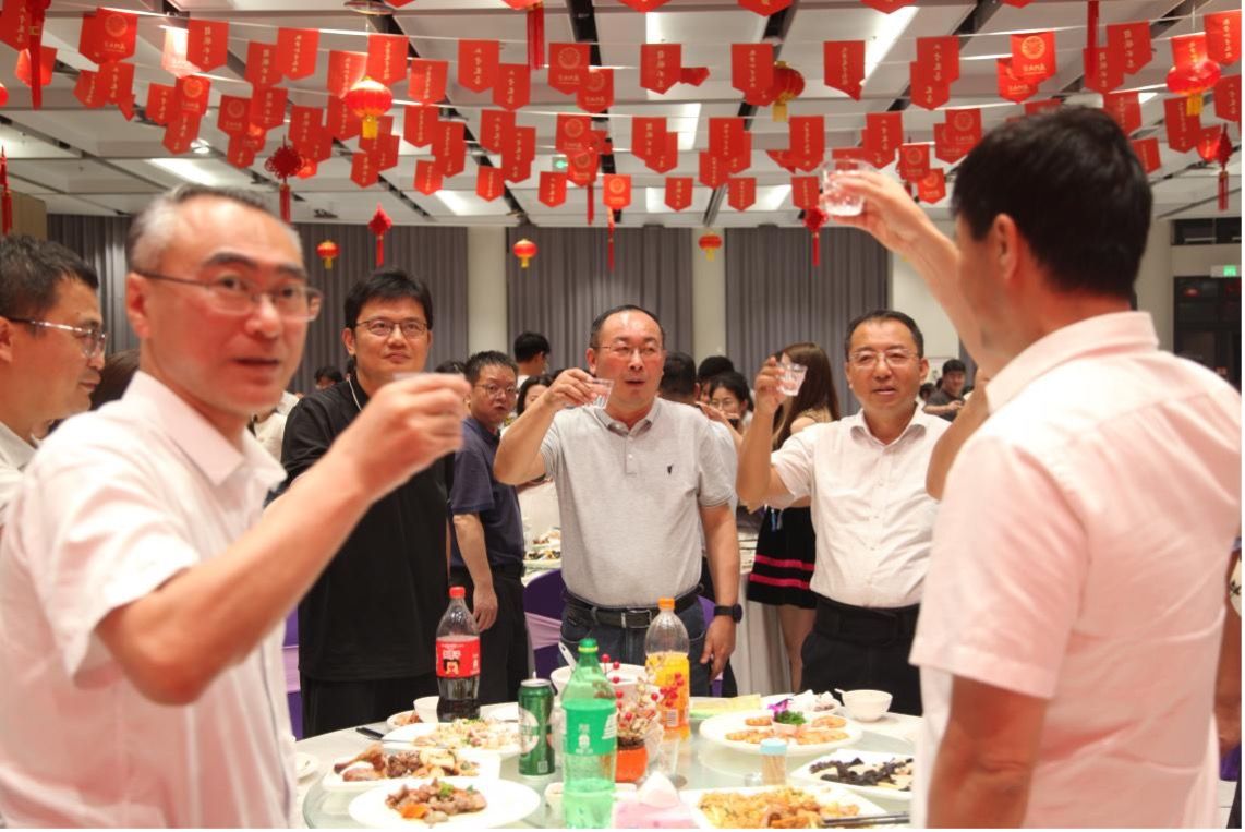 在祝酒互动环节,师生们纷纷起身,举起手中的酒杯,在璀璨的灯光下构成一幅温暖的画面。