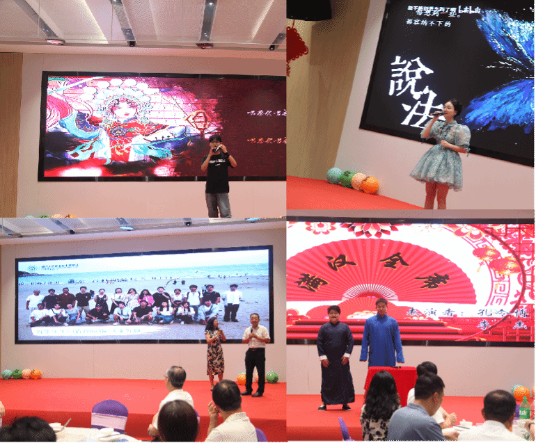接着,一系列精彩纷呈的节目轮番上演,为全场师生带来了一场视听盛宴。首先登场的是房帅,他以一曲乐器独奏《赤伶》惊艳全场,让我们感受到青春的热烈与深沉。随后,殷文凤带来歌曲《珠玉》,让我们感受到沉淀在岁月长河中的同窗情谊与厦园记忆。院友李裕红老师的登场引发全场热烈掌声,她和黄凌风老师共同演唱经典民歌《茉莉花》,悠扬婉转的旋律不仅唤起了师生们的共同记忆,更传递着母校对毕业生的殷切祝福与不舍之情。孔令博和李杰带来的相声《满汉全席》,两位同学妙语连珠、配合默契,幽默风趣的表演引得现场笑声不断。