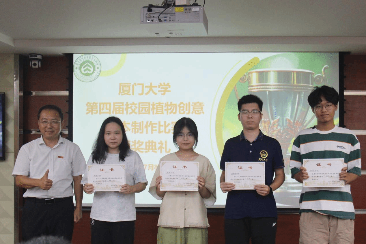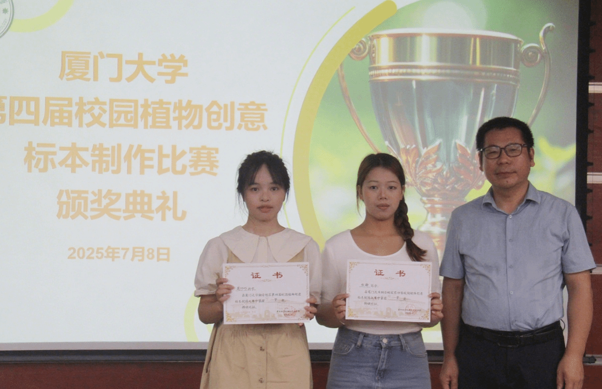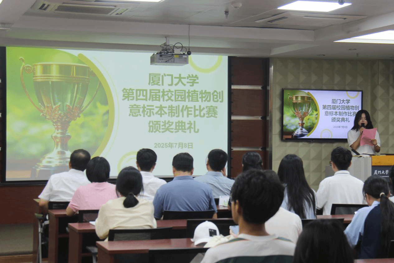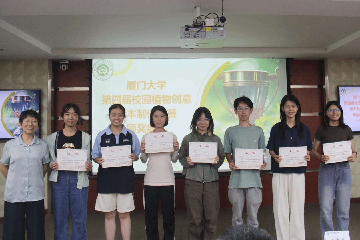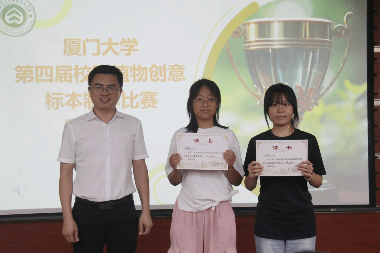 7月8日中午,厦门大学第四届校园植物创意标本制作比赛颁奖典礼在翔安校区金泉楼A239举行。本次比赛由环境与生态学院、翔安校区学生办和校园“多维度”生态环境调查创新实践平台共同主办,由环保协会,学院青年志愿者协会、本科生党支部、工程技术人员教工党支部共同承办,并得到厦门市金桥科教拥军促进会的赞助支持。翔安校区管委会副主任刘俊杰,翔安校区学生办公室主任兼学生工作部(处)副部(处)长林明华,金桥科教拥军促进会理事、学院袁东星教授,副院长黄凌风教授,学院党委副书记蔡虎堂、王旖旎,公共卫生学院团委书记刘浥泓、医学院团委书记邱超超等嘉宾以及各学院的参赛同学们出席了本次活动。