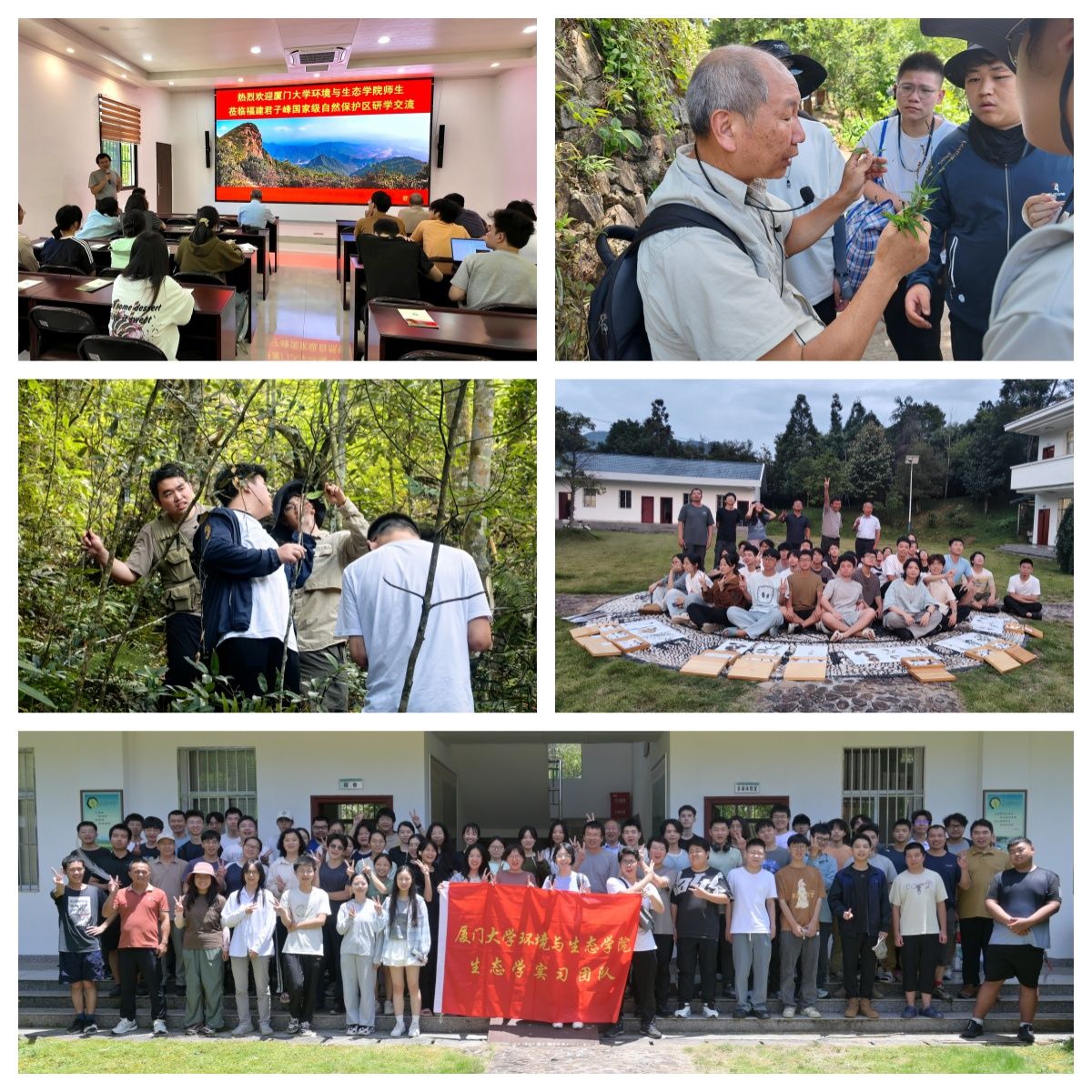 6月25日至7月2日、7月2日至9日,2022级、2023级学生分别前往福建君子峰国家级自然保护区开展森林生态系统实习。抵达保护区后,同学们迅速整理宿舍,参加动员会议。在为期8天的实践周期内,学生分组完成了植物群落调查、陆生脊椎动物(两栖类、爬行类、鸟类)及土壤—地形地貌的系统调查,学习并掌握了植物与昆虫标本的采集、制作全流程,共鉴定植物100余种、制作植物标本600余份、昆虫标本180余份,涵盖17个目。君子峰实习的最后两天,各组结合前期调查发现,设计并开展了诸如“小叶红豆生境偏好与生态位特征”、“枯木微生境昆虫群落结构”等一系列自主实验,并进行了实习中期汇报,通过 PPT及视频展示调查数据、实验进展及初步结论,指导老师逐一点评并提出改进建议,为后续实习深化指明方向。
