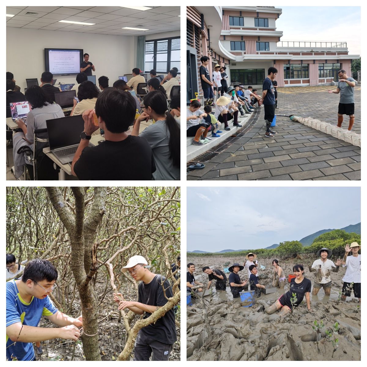 7月4日至9日,2022级学生来到漳江口红树林国家自然保护区,聚焦滨海湿地生态系统模块开展专业实习。在这里,同学们通过专题影像系统了解保护区的建设历程与生态保护成果,实地参观了保护区栈道和红树林通量塔,在教师指导下学习了湿地与大气间温室气体交换通量的观测技术,掌握了无人机遥感监测的数据处理和分析方法,开展了红树林植物群落样方调查、红树林-互花米草交错带样方监测以及潮间带生物调查等野外调查方法,并对调查结果进行了科学分析。