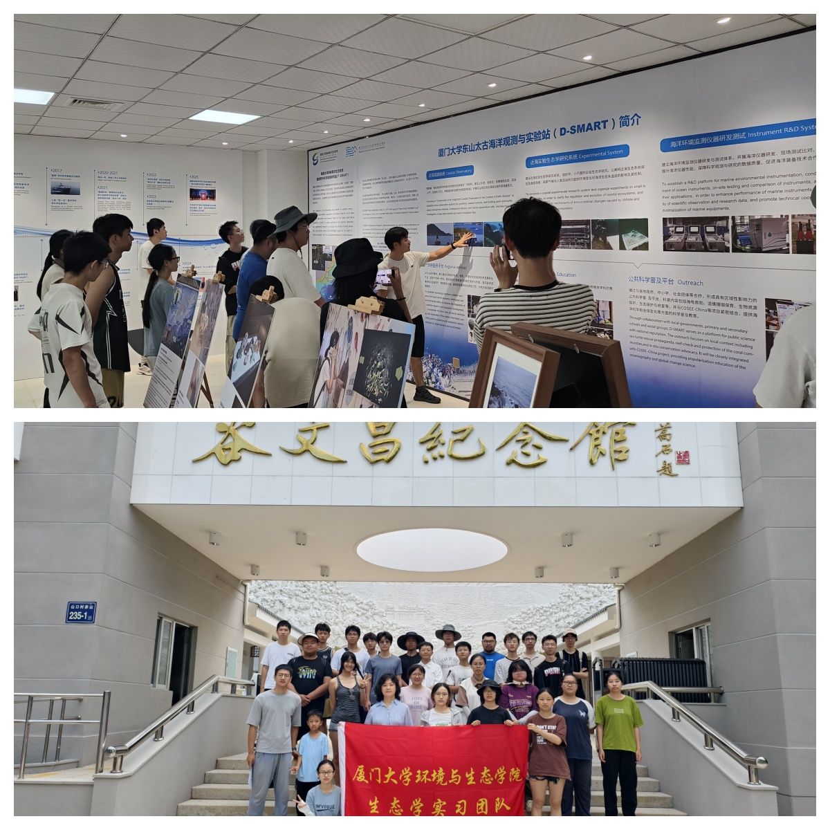 7月9日,师生团队赴谷文昌纪念馆开展思政教育实践。在纪念馆讲解员的讲述中,学生通过历史影像与原始手稿等实物史料,全景式追溯谷文昌扎根东山14年的治沙历程。这场跨越时空的对话,使同学们深度认知木麻黄防护林生态价值的同时,更淬炼出"为官一任,造福一方"的政绩观内核,将生态文明建设的理论自觉升华为守护绿水青山的行动自觉。实习终程,同学们来到台湾海峡海洋生态系统野外科学观测研究站(东山站),通过站内工作人员的介绍,对站内的科研工作和生活场景有了全面而深刻的认知。