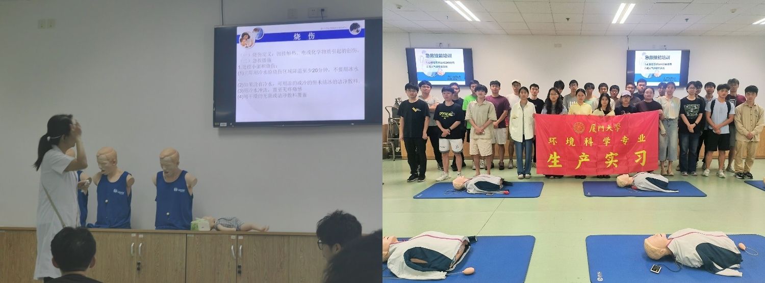 6月23日上午,一场旨在提升生产实习安全应对能力的安全培训在五号楼A201教室顺利举行。针对生产实习过程中可能遇到的各类突发状况如中暑、被蜜蜂蛰伤等等,翔安医院的资深医生们精心策划了一场急救知识盛宴,为同学们传授了伤口包扎、固定等常见急救处理方法、除颤仪的正确使用方法、心肺复苏术的操作技巧等等。同学们全神贯注地聆听讲解,随后在仿真模拟环节中亲身实践,模拟急救场景,进行心肺复苏和人工呼吸等常见的急救操作,让同学们深刻领悟急救操作在实践中的要点,提高应对突发事件的能力,为接下来的生产实习提供坚实保障。