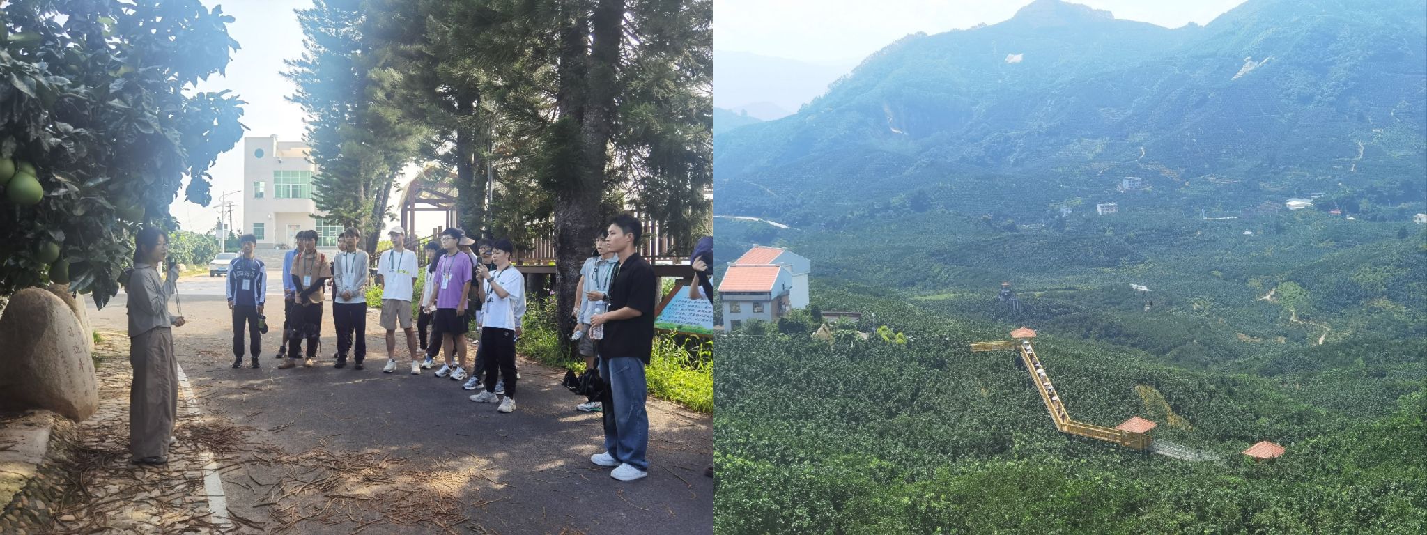 25日上午八点,经过了一晚的休整,大家整装待发。首先,队伍乘车前往平和县小溪镇厝丘村的平和琯溪蜜柚示范观光园。在镇长的带领下,同学们详细了解了平和蜜柚产业的发展历史、发展现状,以及环境保护工作的实施情况。之后,大家前往“柚达拉宫”参观打卡,并一起体验了栈道和索桥。