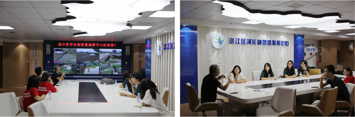 座谈会上,曾武峰首先向实践队员展示了洛阳江数字孪生流域平台,实现了“流域治理一张图”的功能。随后,针对实践队员反映的问卷中提的“农业面源污染”“河道垃圾清理”等问题,他也作出了专业解答。他表示,洛江区已采取“源头管控+生态拦截”双轨策略,同时,依托“河湖长+公检法司”联动机制,强化流域精准治理。实践队员王易涵感慨道:“治水正从‘凭经验’转向‘靠数据’转变,河长制也从‘有名’向‘有实’转变,数字化、智能化科技技术正推动生态环境治理迈向崭新台阶。”