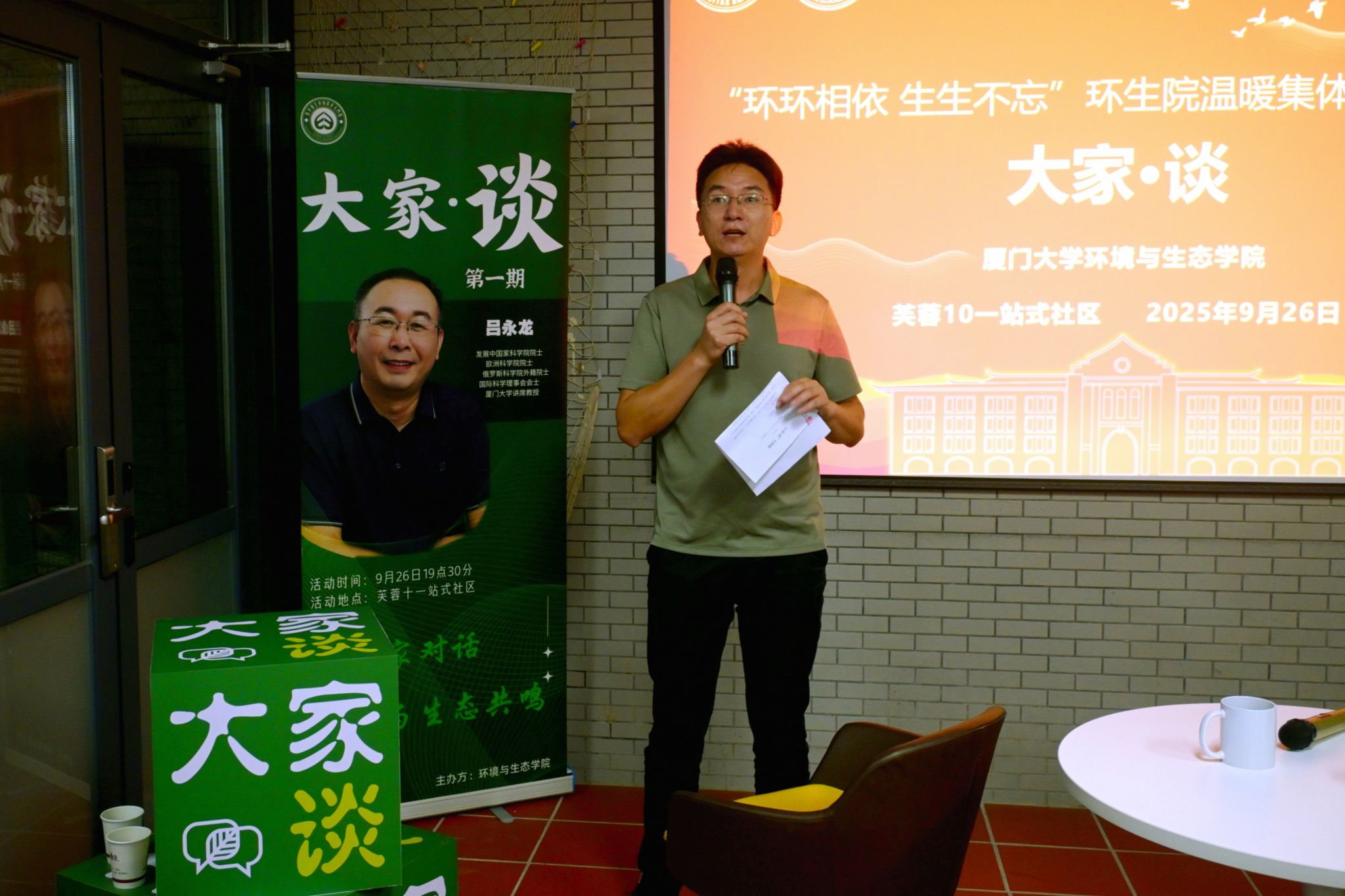 9月26日晚,我院首期“大家·谈”活动在芙蓉十“一站式”社区成功举行。作为学院“温暖集体建设”系列育人活动的重要一环,本次活动特邀发展中国家科学院院士、厦门大学讲席教授、环境与生态学院院长吕永龙老师与本科生进行面对面交流,围绕学业规划、专业认知、职业发展等话题展开深入探讨,助力同学们更好适应大学学习节奏、明晰个人成长路径。活动由生态学系副主任刘文文老师主持。