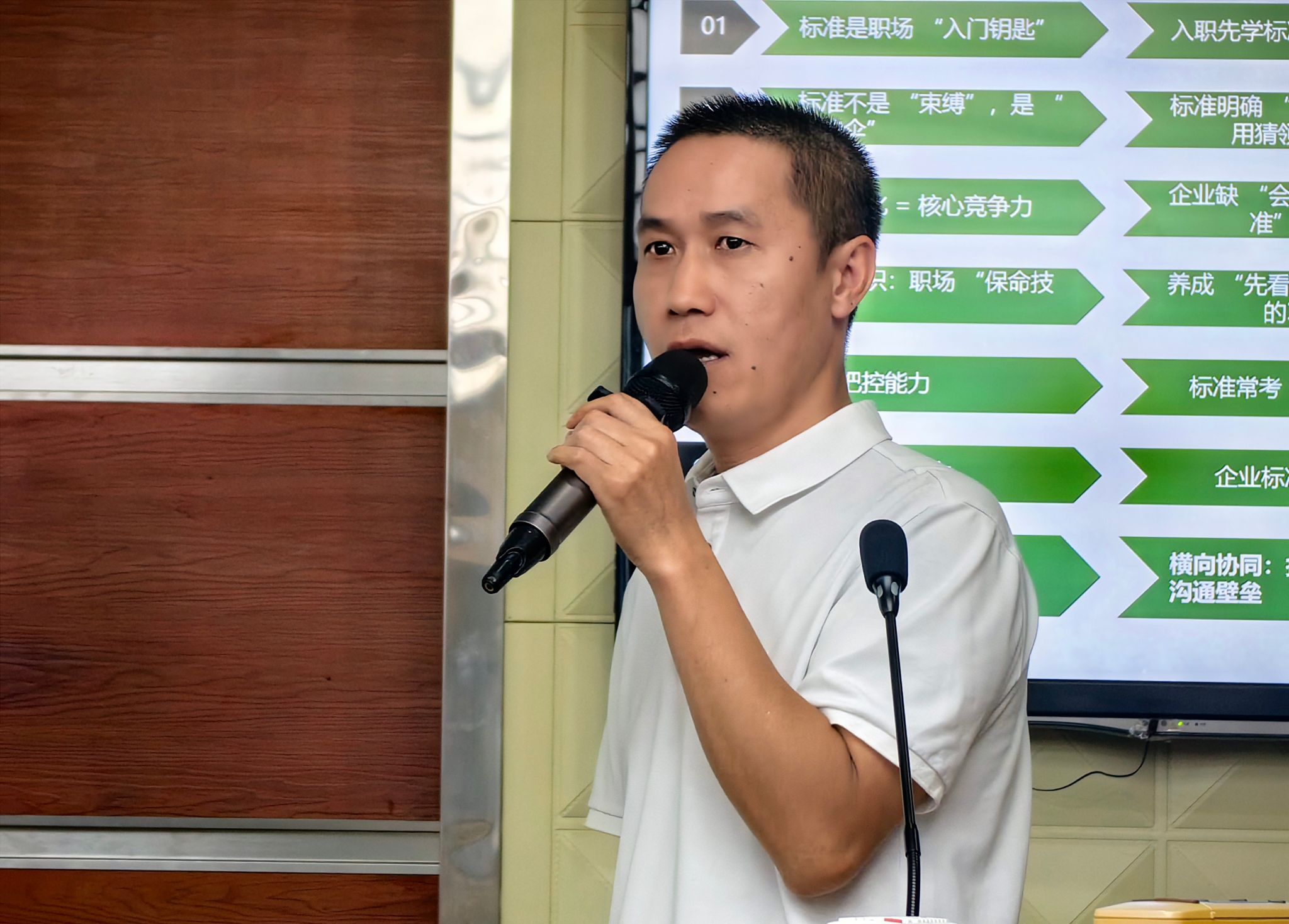 行业标准认知:净水产业链分会培训部部长、安吉尔标准法规室经理罗滨文围绕净水产业标准展开,用通俗类比解读标准的重要性,系统梳理国家标准、行业标准、企业标准的分类与实践价值。结合安吉尔三十余年的行业积累,强调“懂标准是核心竞争力”—— 掌握关键标准不仅能提升跨部门沟通效率,更能让产品研发、生产更精准高效。