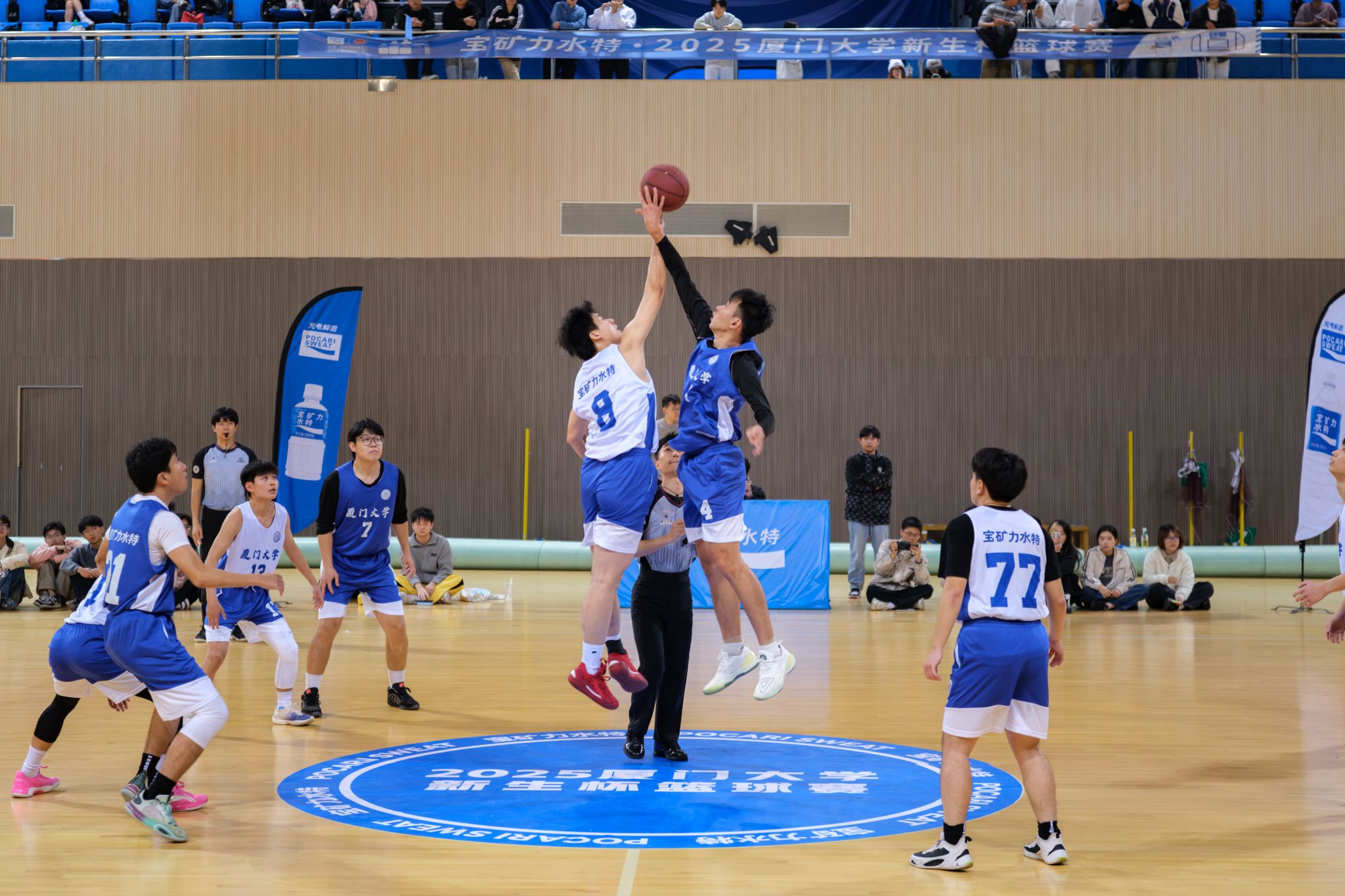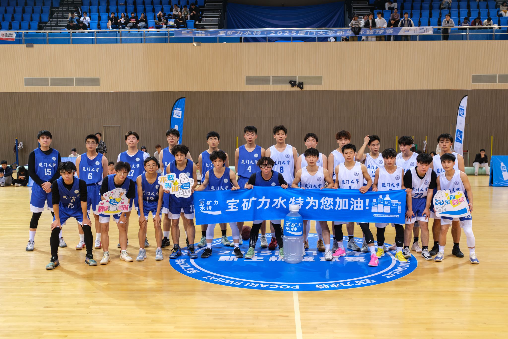 12月20日晚,2025年厦门大学“新生杯”篮球联赛翔安校区决赛在爱秋体育馆打响。此前,我院队伍一路过关斩将,强势闯入决赛,与信息学院男篮展开终极对决。