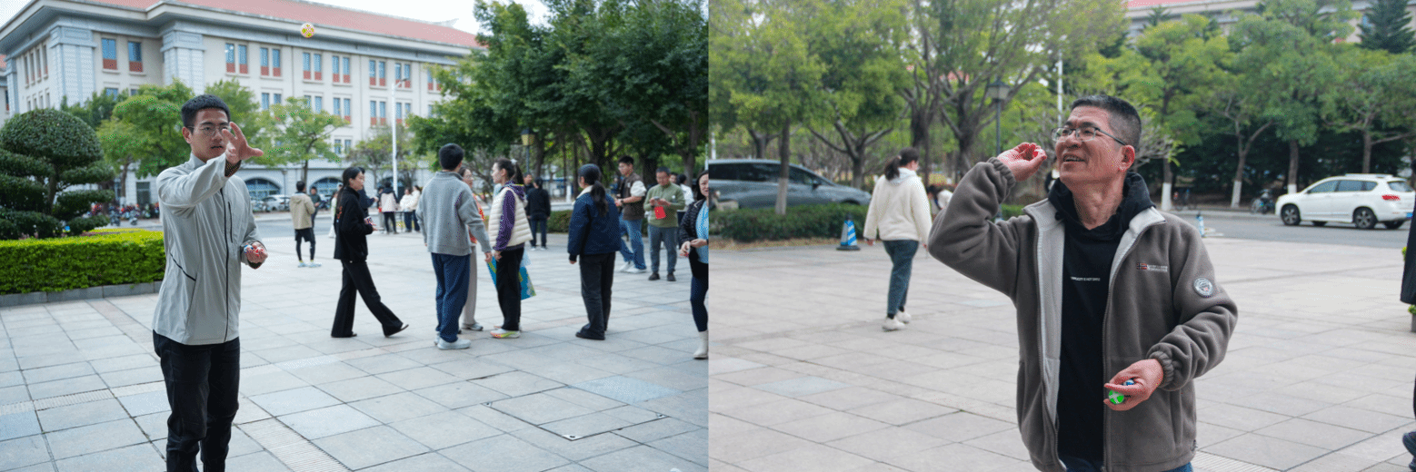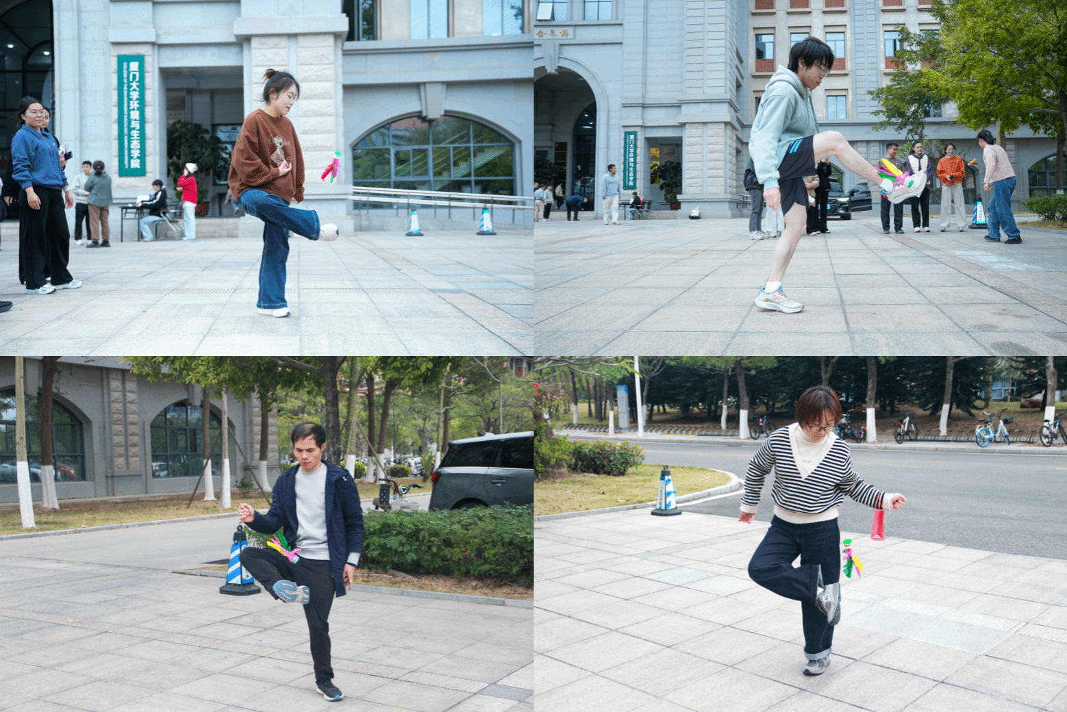 在踢毽子小游戏的场地上,选手们使出浑身解数,毽子在空中辗转,累计100次的目标看似简单,却也让大家在奔跑跳跃间充分热身,活跃了气氛。