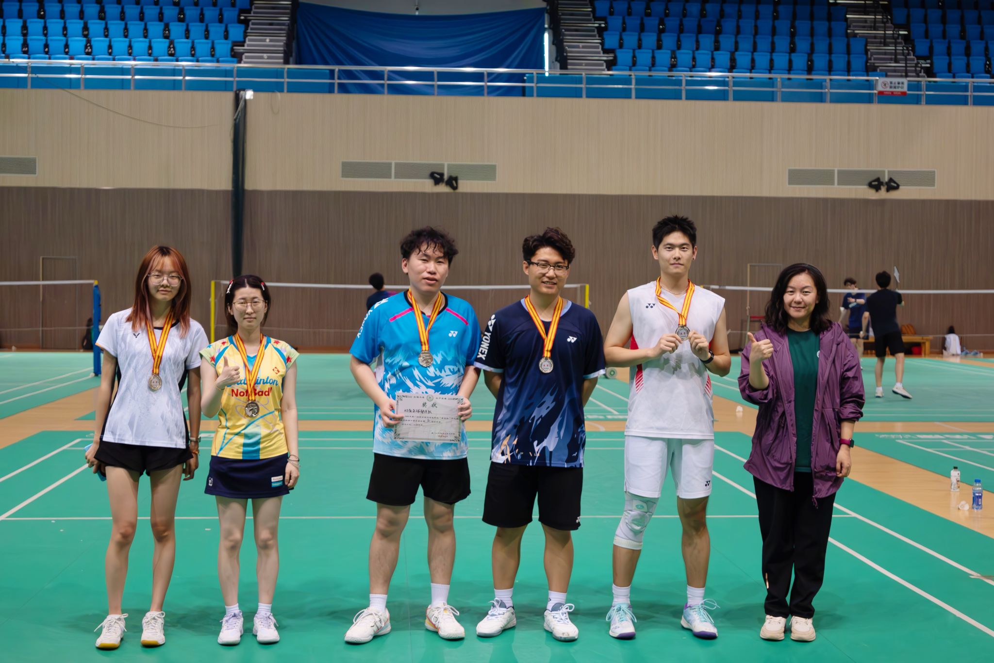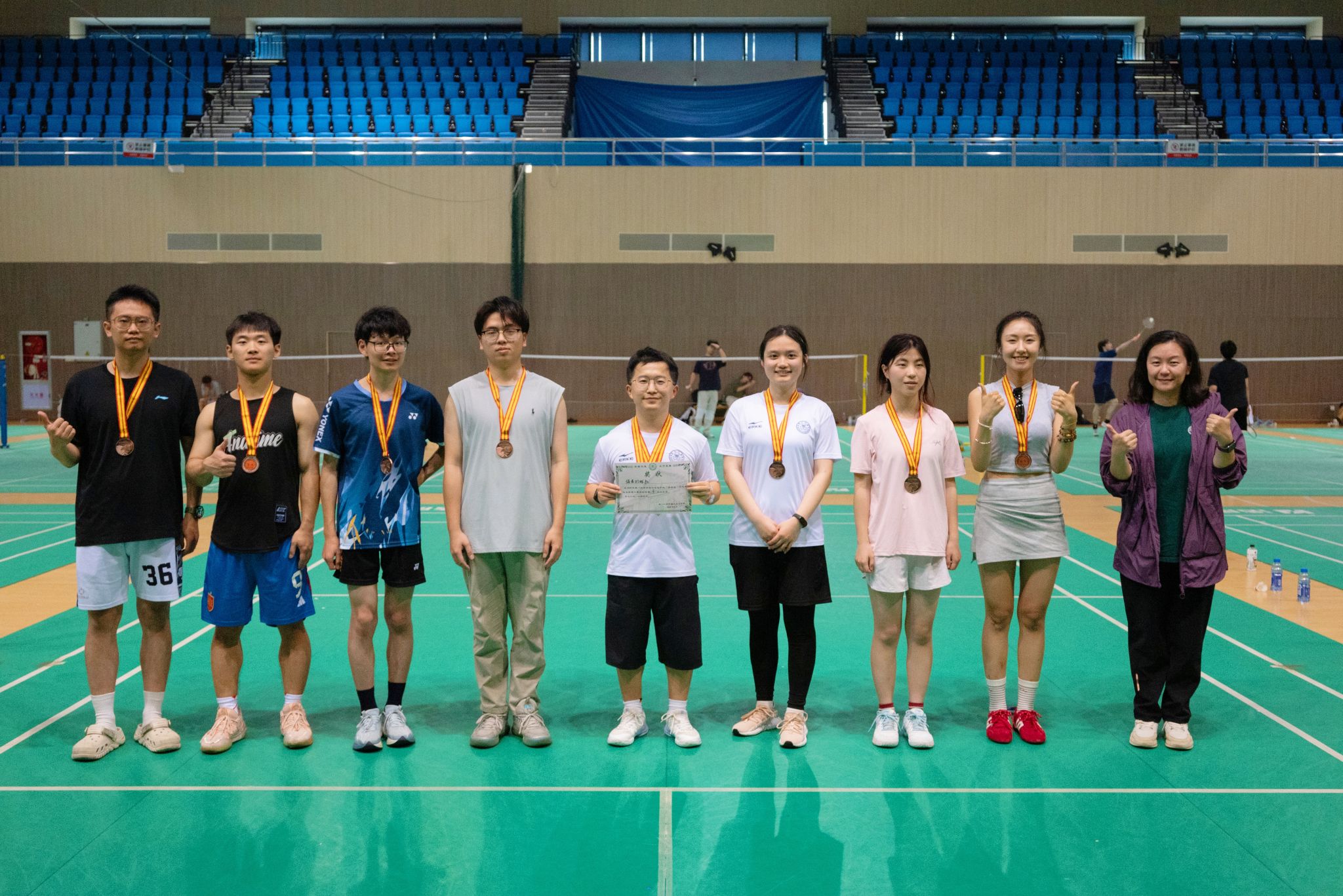 最终, “菲菲公主都队”获得冠军,“对面杀球都不队”获得亚军,“佛系打球队”斩获季军。学院党委副书记王旖旎为获奖队伍颁奖。
