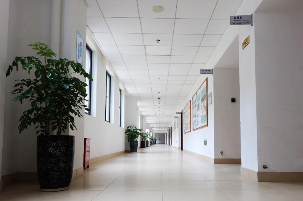 实验教学中心楼道的绿植迎接学生回归(林清贤老师摄)