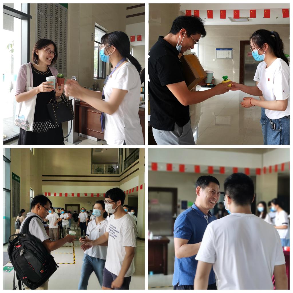 9月10日上午,党支部成员在金泉楼一楼大厅为到学院的老师们敬上一杯热腾腾的清茶,送上祝福,表达感谢。递上茶杯的一刻,十几名学生齐声喊道:“老师,您辛苦了!”“环保感恩卡”融入了同学们的“小心思”——用回收的落叶通过叶拓的方式制作而成。学生们还为各位老师送上了精心培育的绿意盎然的盆栽。