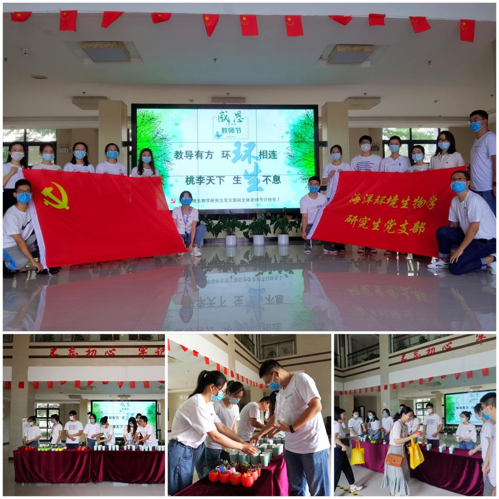 尊师重教是中华民族的传统美德。在第36个教师节之际,环境与生态学院海洋环境生物学党支部在学院党委指导下,秉承传统文化,于9月10号上午开展“桃李满天下,难忘师恩情”主题党日活动。活动紧扣“尊敬、感恩”主题,并结合专业特色,弘扬尊师重教良好风尚,表达对老师们的感恩之情。