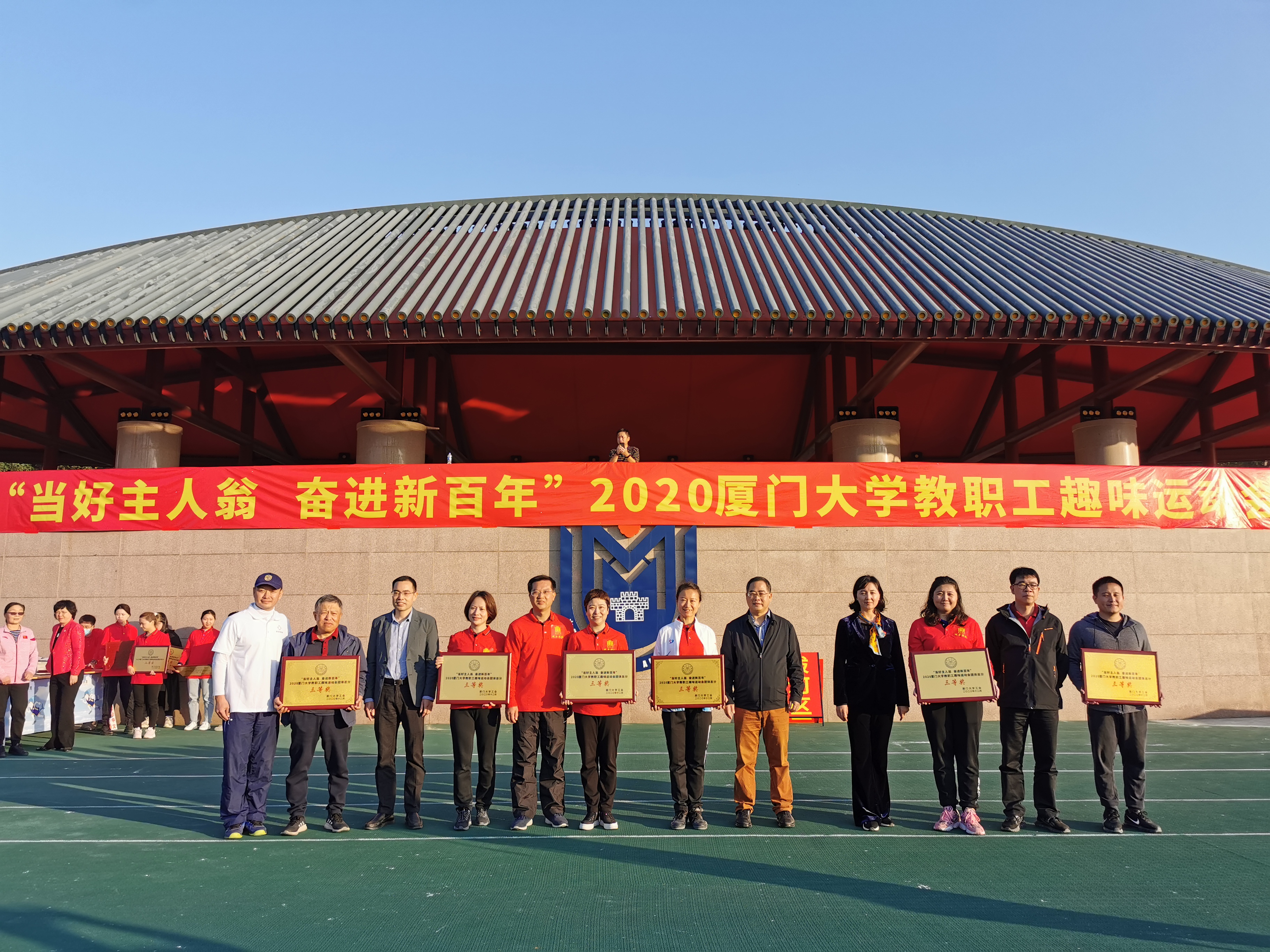 为迎接厦门大学建校百年,校工会于倒计时100天之际举办了“当好主人翁 奋进新百年”2020厦门大学教职工趣味运动会。