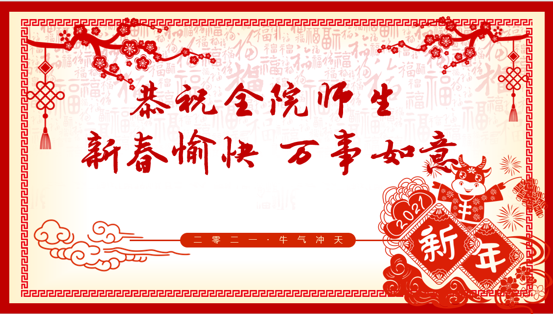 鼠去牛来一元欣复始,春明日丽万象喜更新。今年寒假,不少同学选择留校,农历牛年春节前,我院精心开展“我们的节日·春节”主题系列活动,让留校学生感受到浓浓的年味,开心快乐迎新年。