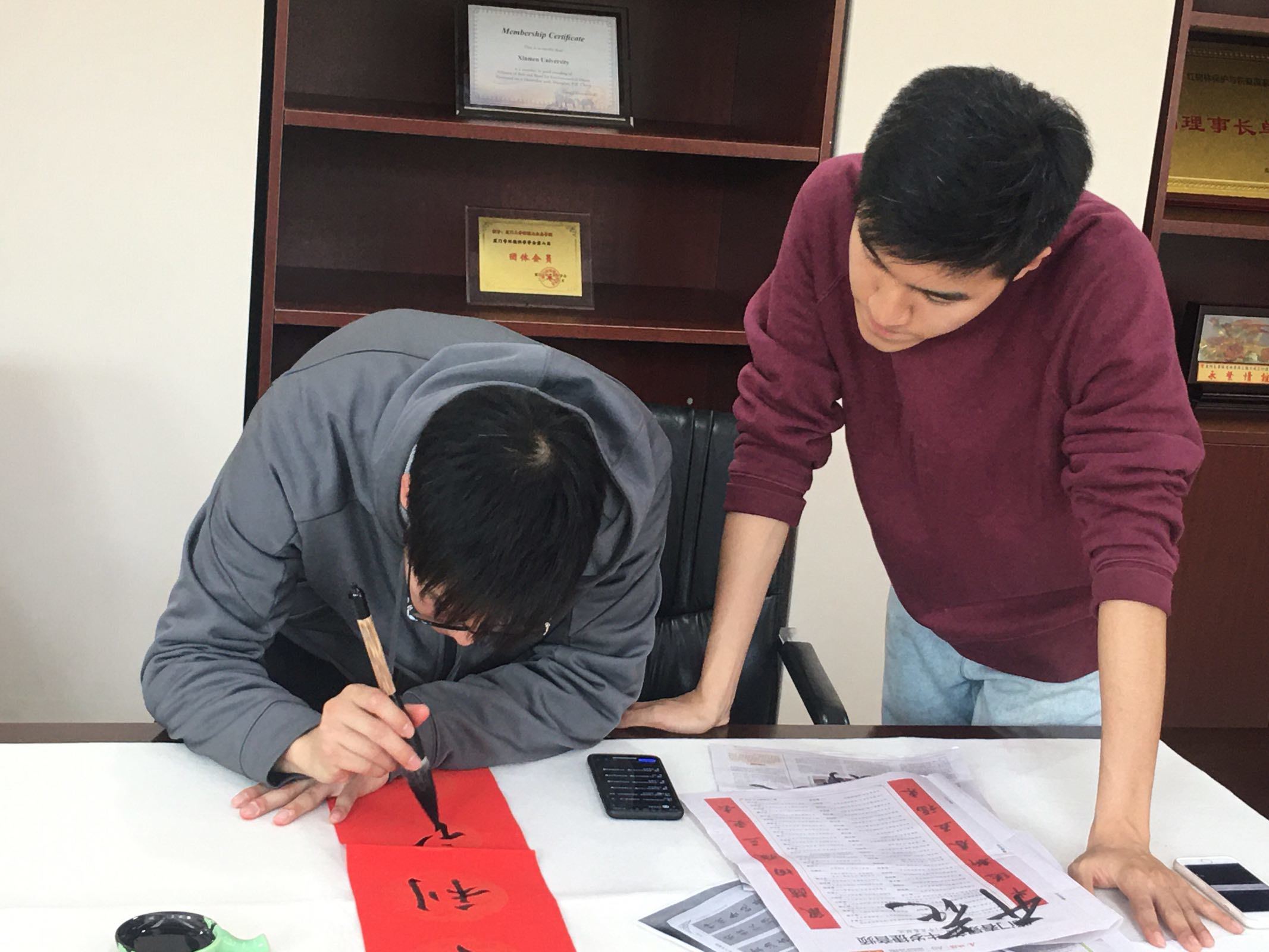 写春联、写福字……2月5日下午的院楼A226,一片欢声笑语。大家正齐聚这里,挥毫泼墨写春联。“学业爱情双丰收 专利论文两开花”“同沐春风花满地 共迎新春喜盈门”……墨韵纸香,一笔一划,同学们纷纷写下了对新一年的美好期盼。