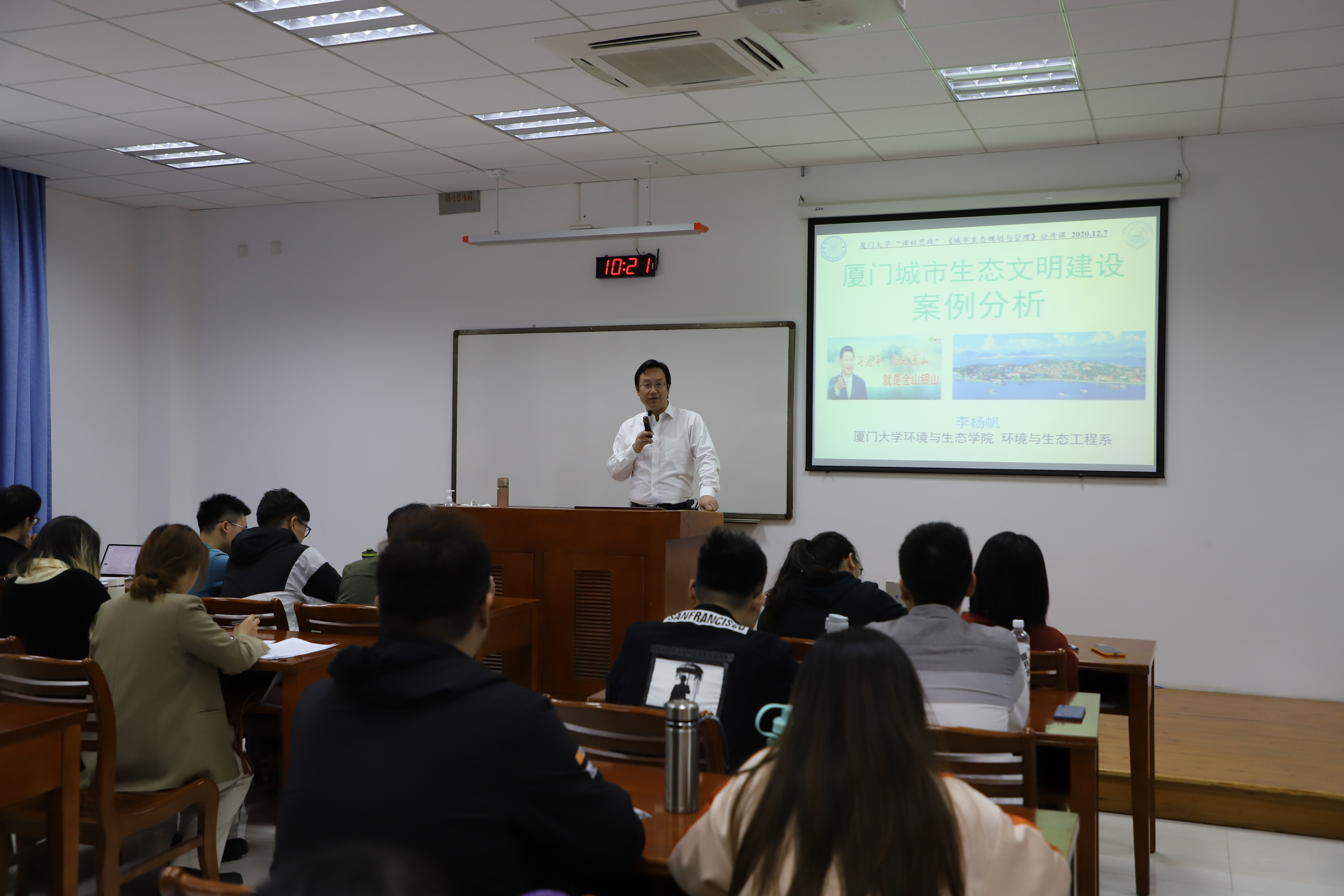 李杨帆教授在课堂上讲解厦门城市生态文明建设案例