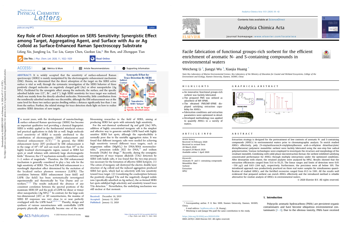 学院荣获厦门大学2020年度科创竞赛工作先进集体奖。学院举办的厦门大学节能减排社会实践与科技竞赛(已举办六届),获评本届年会品牌校级学业竞赛项目。2017级环境科学专业本科生谢丽芳(指导教师:刘国坤)、李玮铖(指导教师:黄晓佳)以第一作者发表的SCI论文双双获得厦门大学2020年度本科生优秀论文一等奖。李玮铖同学的论文入选第十三届全国大学生创新创业年会学术论文交流,并获评厦门大学2020年度德贞社会课堂基金学生学业竞赛奖一等奖。2017级生态学专业本科生尤艳萍完成的大创项目《新型纳米Bi2WO6/BiOI负载Fe3O4材料的制备及其对四环素类抗生素的光催化性能与机理研究》(指导教师:区然雯)获评本届年会优秀、最佳大学生创新创业训练计划项目。学院科创秘书刘珺获评本届年会科创竞赛工作先进个人。