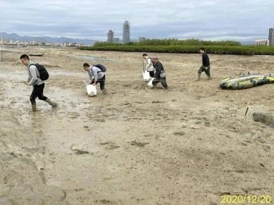 这次称为“心无杂念向祖国,五星光辉耀中华”的景观修复工程由卢昌义团队承担, 每次上岛,团队人员都要趁低潮,踩着泥滩艰难前行。