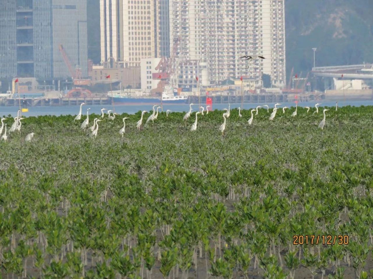 大屿岛白鹭自然保护区恢复红树林生境后引来大批白鹭