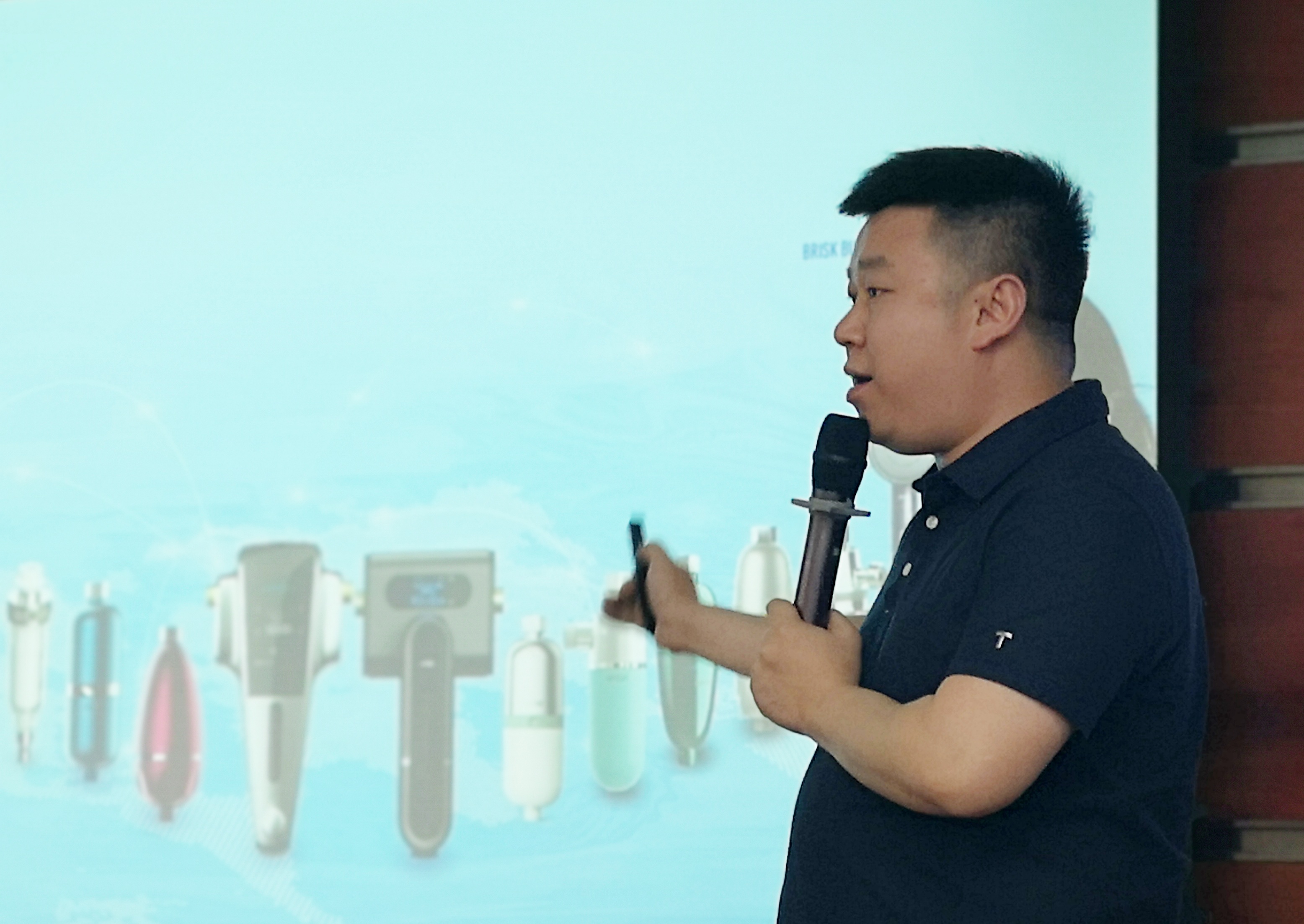 刘小林先生的报告从自己与净水行业结缘的故事讲起,提到个人的发展离不开明确自身的定位和善于与他人合作,也给在场的同学们给出了不少中肯的建议。讲到企业的发展历程,背后其实是“一米宽,一万米深”的行业深耕,他向同学们展示了五花八门的前置净水器,脱胎于基础创新的产品迭代过程体现出了自动化、智能化的发展方向。他特别指出,企业要有的不是卖点,而是解决痛点的能力,这也正是企业的生命力所在。