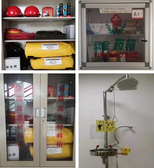 为应对实验意外等突发情况,学院配备了应急喷淋、急救药箱、化学品泄漏应急包、消防应急器材等安全应急设施和器材,着力做好安全设施的定期巡检、维护,药箱的及时补充及过期更换等工作,以确保紧急情况下安全设施能满足师生的应急需求。