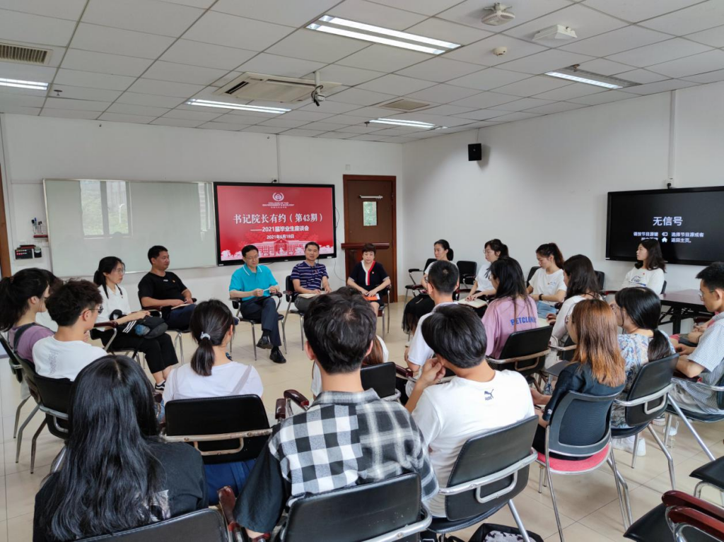 6月18日上午,我院举行了一期专门面向毕业生的“书记院长有约”座谈会,院党委书记张明智、院长李庆顺,党委副书记毛通双、李静,副院长王文卿等与学生面对面座谈交流。