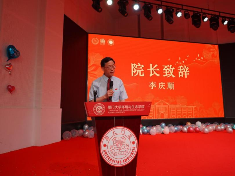 会上, 李庆顺衷心祝贺同学们顺利毕业,他说2021年恰逢建党建校百年、环生十年,是值得纪念的一年,衷心祝贺同学们在这个特殊的年份顺利毕业。他强调当代青年正处于百年未有之大变局的时代:新冠疫情加速改变了国际格局,影响深远;国家提出的双碳计划对可持续发展具有里程碑意义......他希望毕业生们能够一直保有环生人的社会义务和责任,以国际化思维、全球观点看待生态问题,并积极为实现双碳计划贡献力量。他表示,环生院永远是毕业学子奋斗的精神家园、心灵港湾,欢迎同学们“常回家看看”。