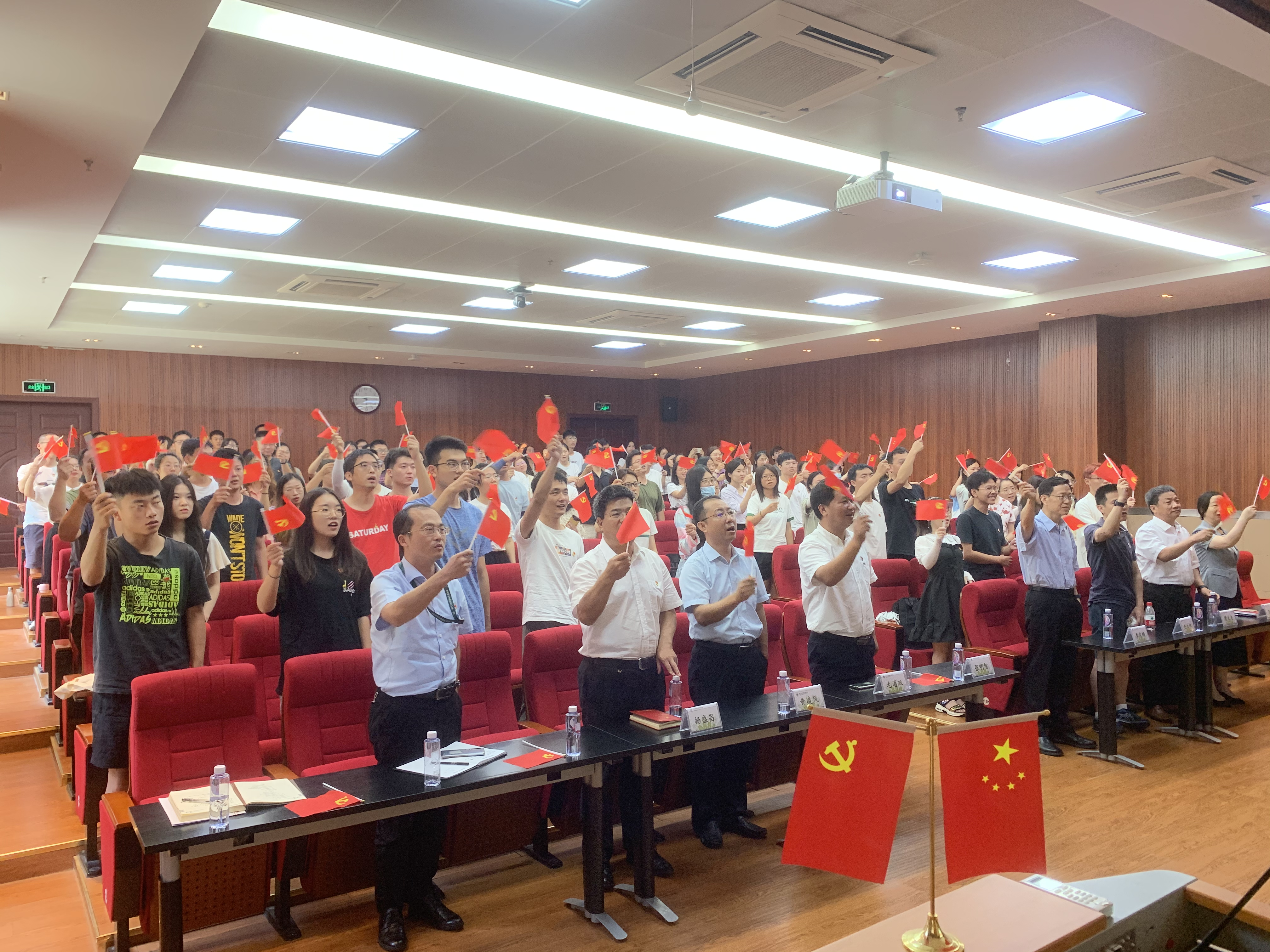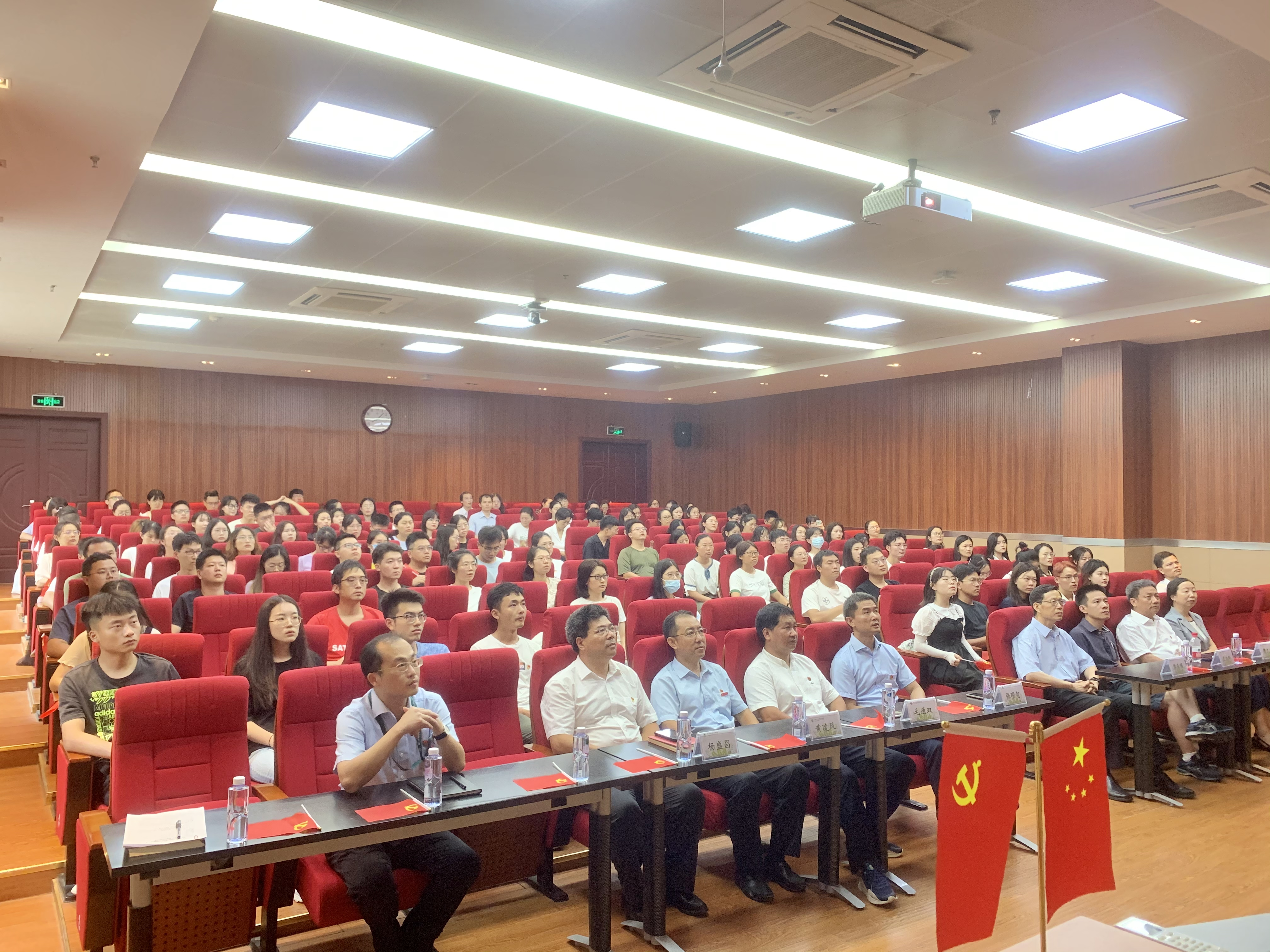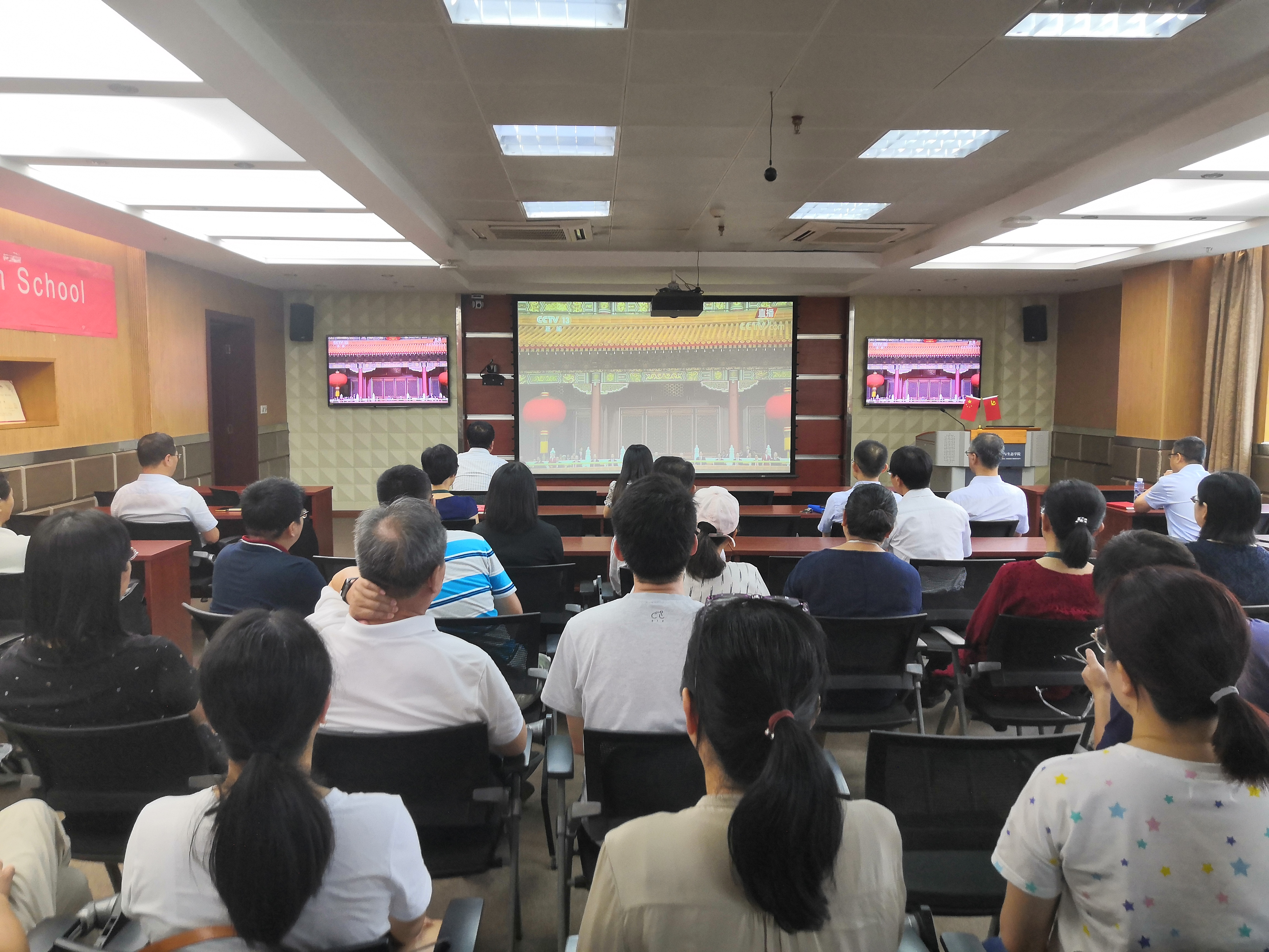 7月1日早上8点整,庆祝中国共产党成立100周年大会在天安门广场隆重举行。我院组织师生党员、教职工共200余人在B103报告厅、A239会议室集体收看大会现场直播。