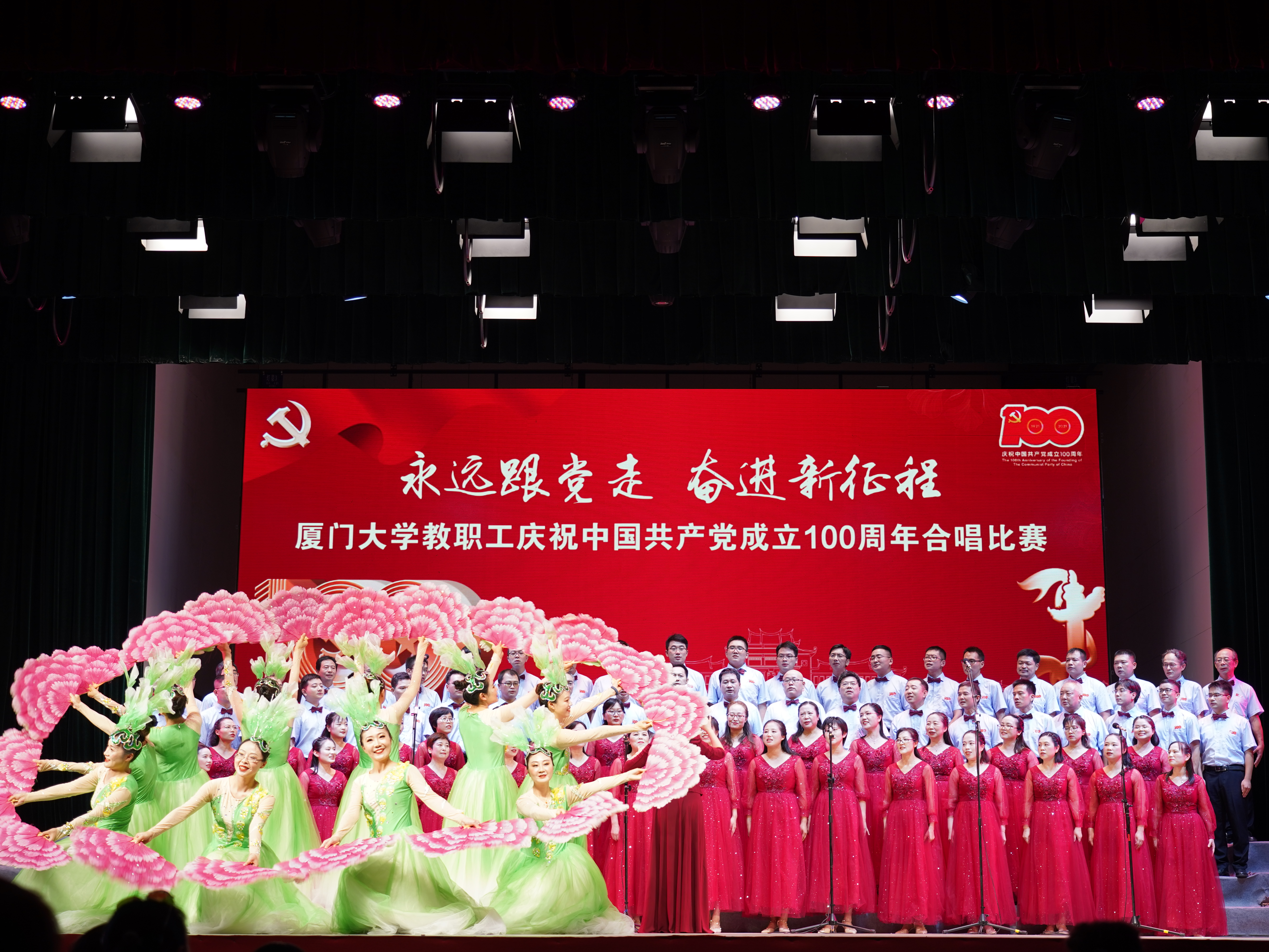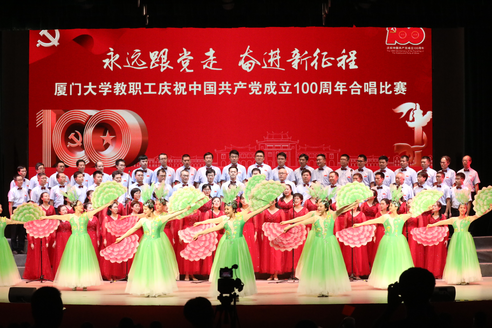 6月27日晚,“永远跟党走 奋进新征程”厦门大学教职工庆祝建党100周年合唱比赛在建南大会堂落下帷幕。经过两天的激烈角逐,我院合唱队凭借出色表现,最终荣获二等奖。