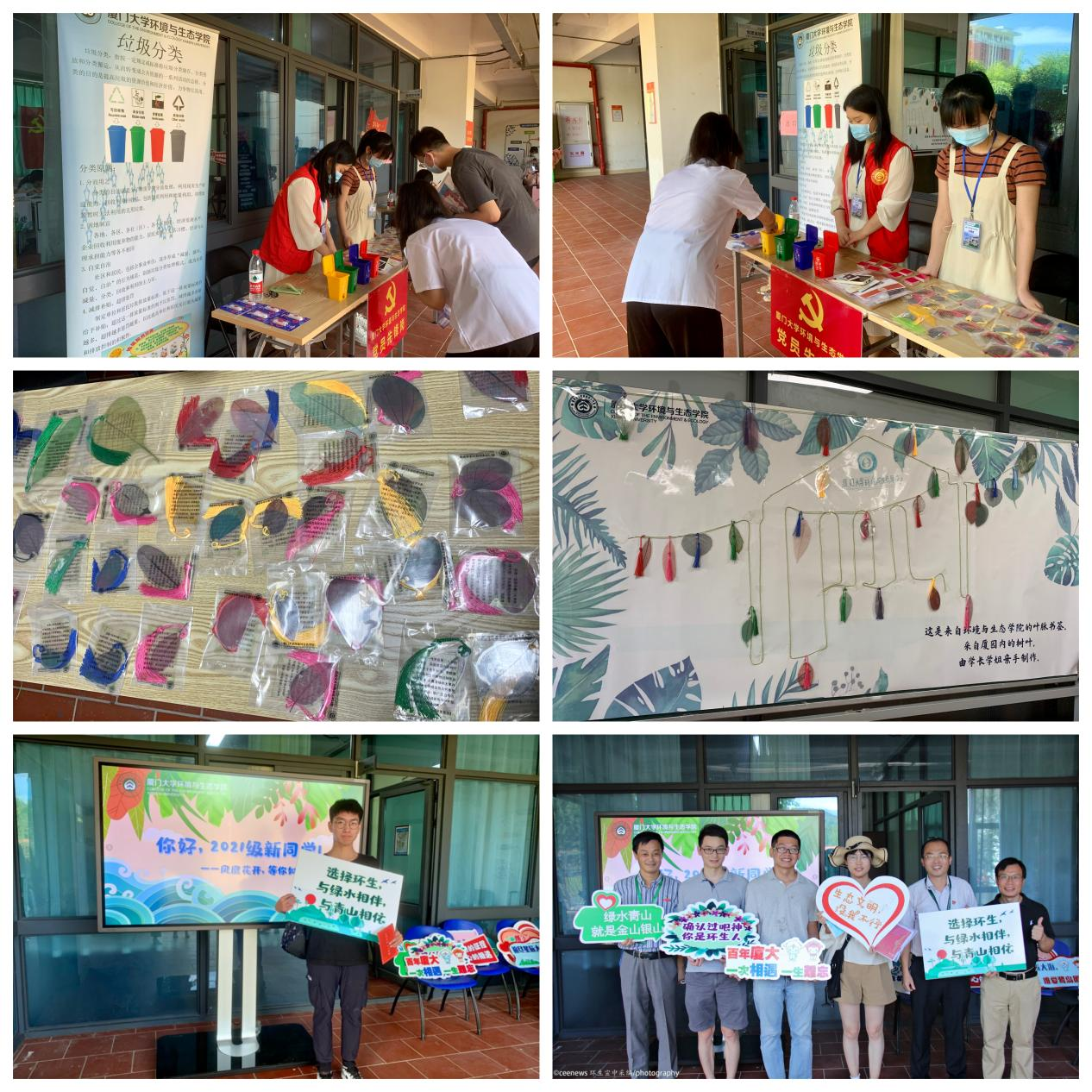 迎新点精心布置了学长学姐亲手制作的叶脉书签,打造独具环生特色的迎新氛围,同时设计垃圾分类知识宣传卡片,依托有趣的分类游戏将环保绿色的理念播种在每一位新生的心中。精美明信片、卖萌神器小草发夹也让新生们爱不释手。