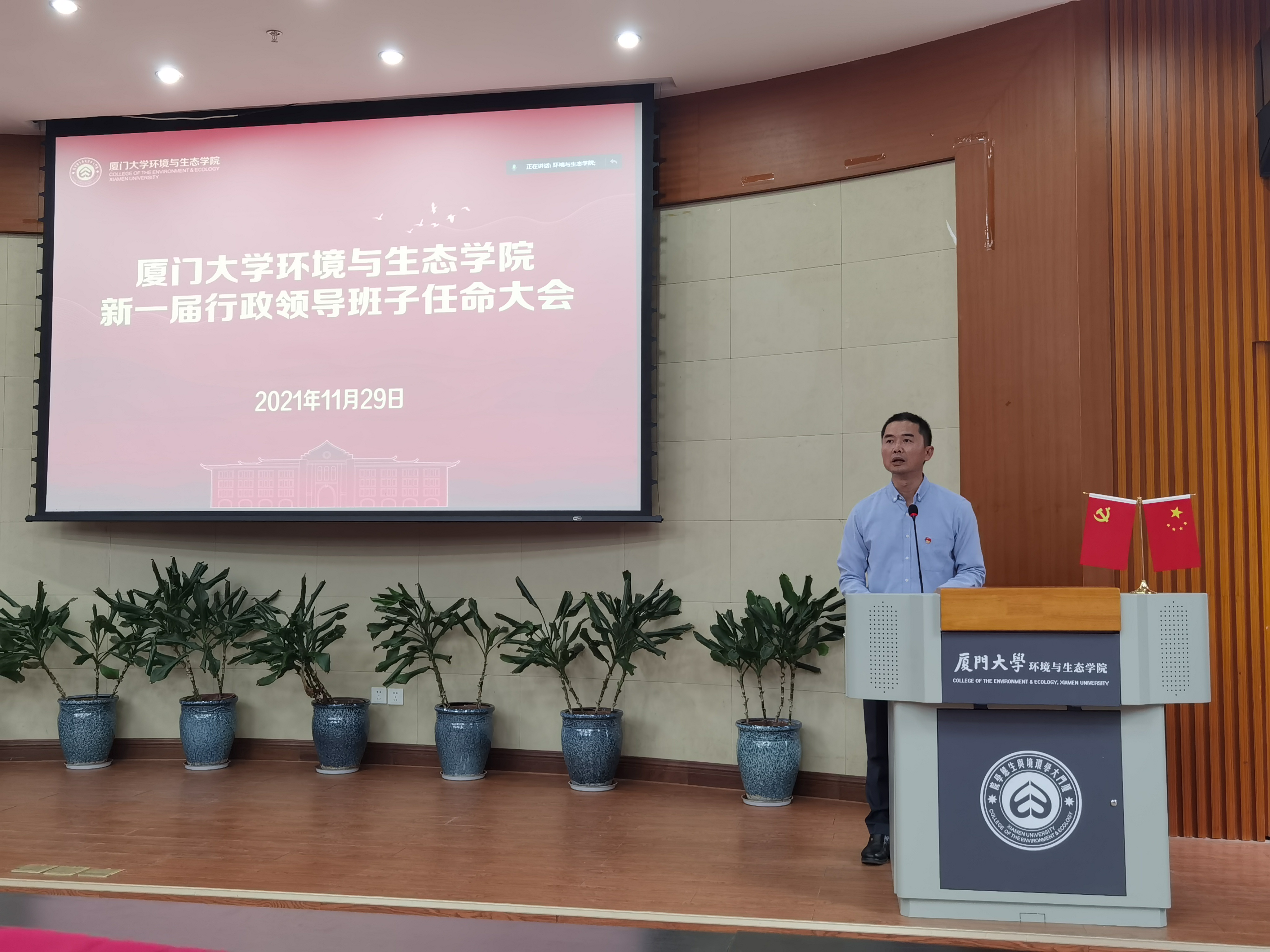 全海代表学校肯定了学院上一届领导班子所取得的成绩,并详细介绍了新一届领导班子的选任过程及民主推荐情况,对新一届行政班子提出五点希望:一是加强班子建设,凝聚工作合力;二是坚定理想信念,把握正确方向;三是突出使命担当,推动科学发展;四是强化政治意识,坚持服务师生;五是严守纪律规律,营造良好生态。他强调新一届班子要团结带领广大师生围绕中心工作认真组织实施“十四五”规划,努力把学院建设成为“具有重大国际影响力的环境与生态科学人才培养基地及研究中心”,为实现学校新百年的奋斗目标作出更大贡献。