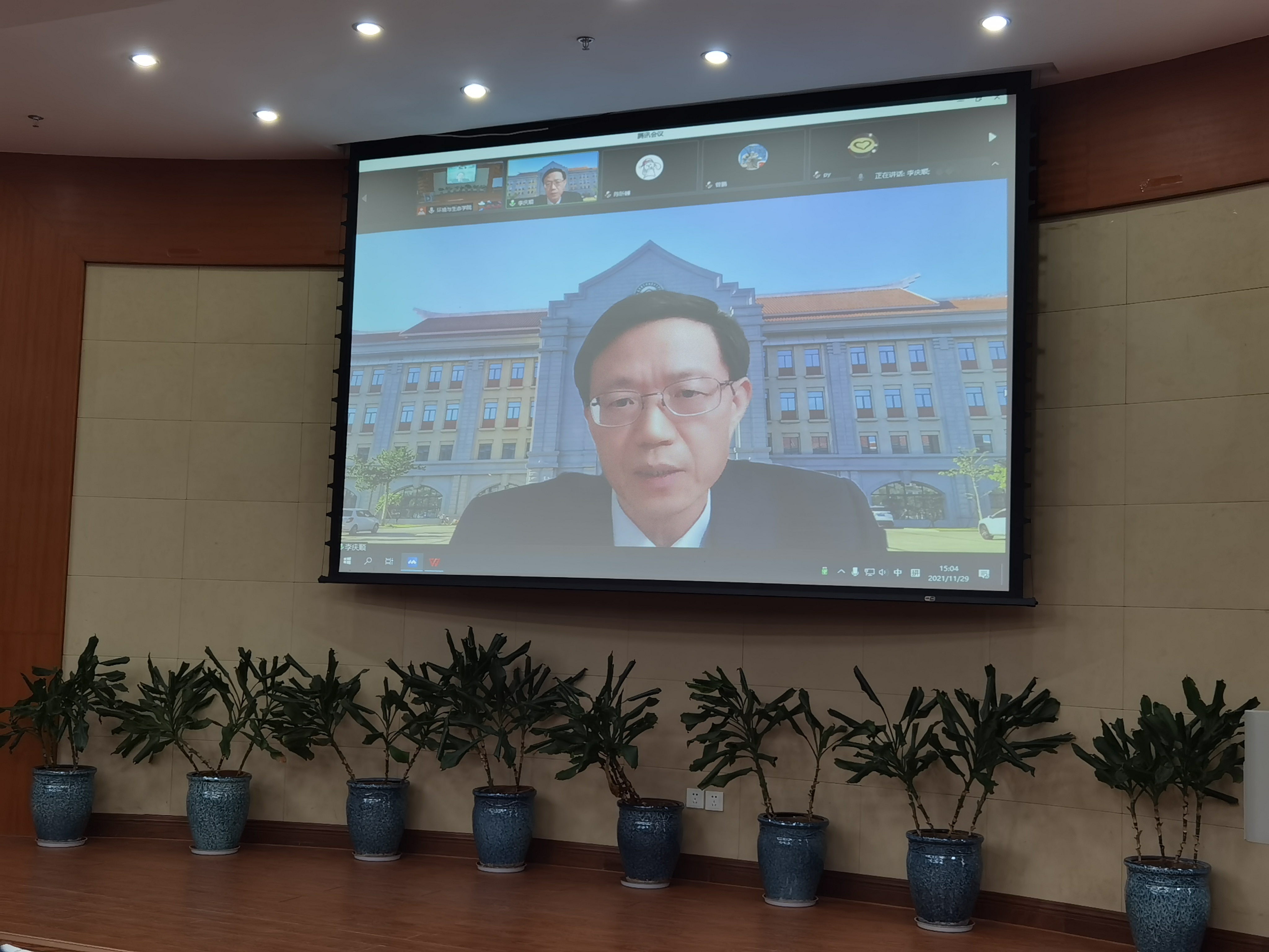 李庆顺教授代表上一届行政班子进行线上发言。他表示支持和拥护学校的决定,并对新一届行政班子表示祝贺。李庆顺回顾了学院从成立至今不断发展进步的十年,细数学院建设中取得的重要成就和标志性事件,对一起奋斗的同事和全院教职工表示感谢,表示未来将继续支持新一届行政班子的工作,期待他们带领全院师生不负众望,砥砺前进,再创辉煌。