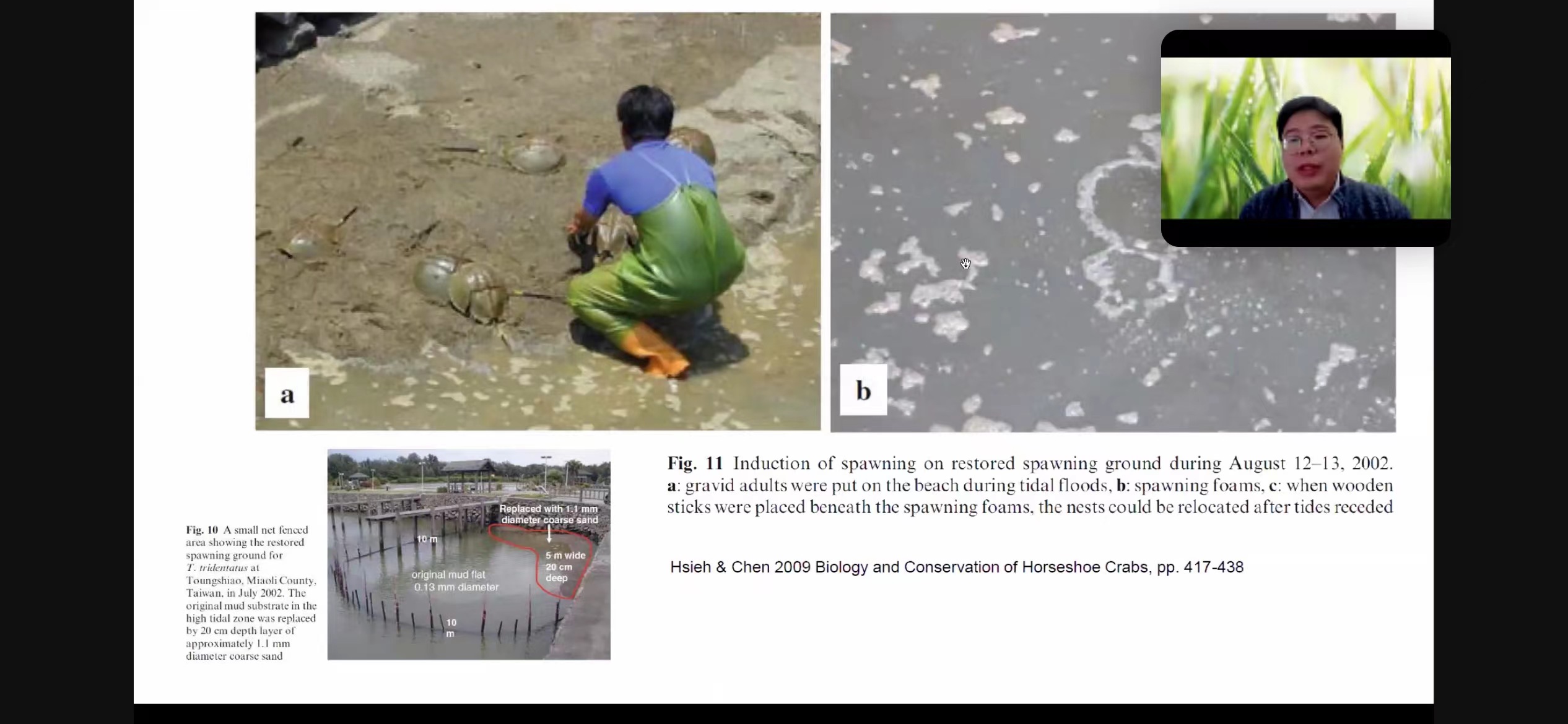 本次研讨会围绕鲎生态学及栖息地生态保护、鲎生物学及种群繁育、鲎资源医用的可持续之道、鲎的科学放流及民间放生之道以及公众教育与政府保护和管理5个主题展开交流,22位专家学者线上线下做口头报告,会议共收到论文摘要64份。厦门大学退休教授洪水根、台湾“中央”研究院荣退研究员陈章波和香港城市大学退休教授Paul Shin分别通在线上线下对鲎的研究与保护提出宝贵建议。