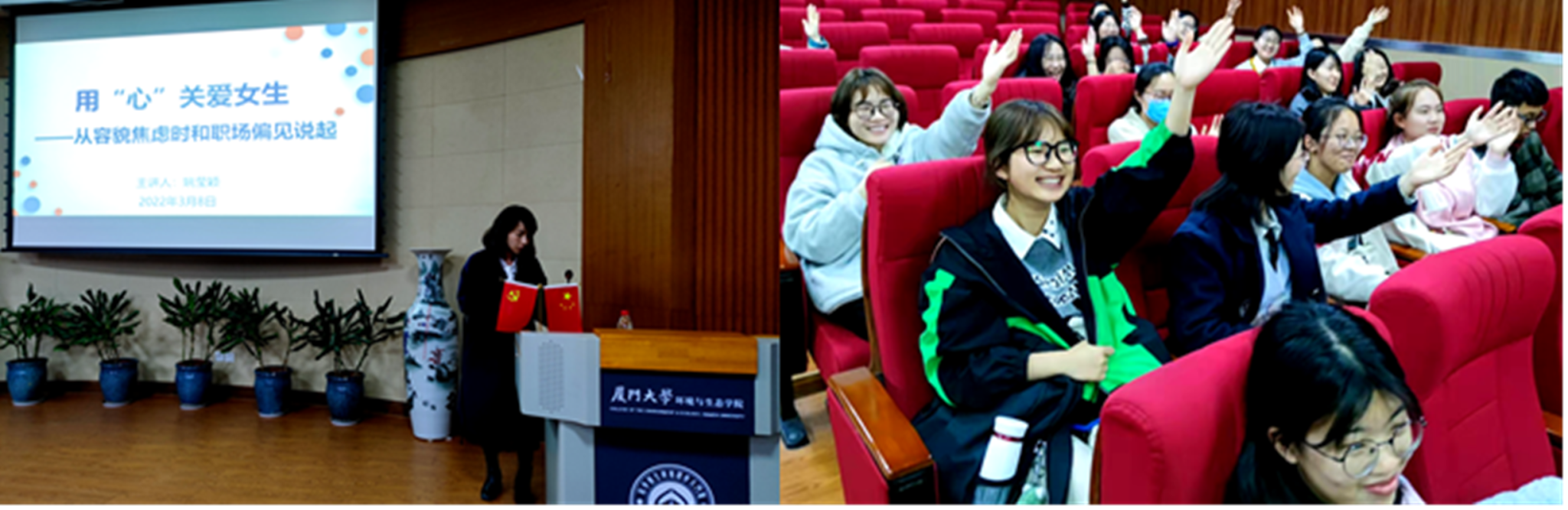 为关爱女生、展现高校女生风采,引导女生关注自身思想素质、业务能力以及心理健康,3月7日,学院研究生会在翔安校区竞丰餐厅前广场举办了“Meeting Better Yourself——关爱女性,青春活力”活动,聚焦女性生理健康问题,关怀校园女生身心健康。