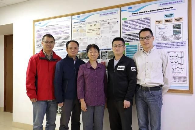 △海洋环境监测仪器研发团队的部分教师(左起:马剑、李权龙、袁东星、黄勇明、刘国坤)