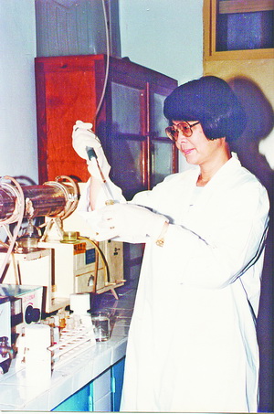 年轻时的洪华生在做实验。(厦门大学供图)
