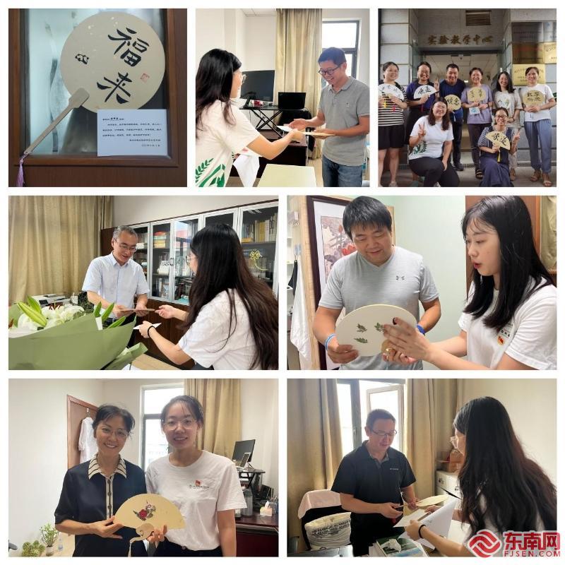 学生们手捧清茶,以茶敬师(厦大供图) 东南网9月10日讯(通讯员 林煊琴)9月8日,在第39个教师节即将来临之际,为弘扬尊师重教的良好风尚,厦门大学环境与生态学院海洋环境生物学研究生党支部在学院党委指导下开展“笔端生芳华 ‘扇’意谢师恩”主题党日活动,向老师们致以节日的祝贺和诚挚的感激。 以茶为媒,敬恩师。以茶敬师之礼,自古有之。给老师奉上一杯清茶,既是对中华礼仪的传承,也饱含师生浓浓情意。活动当天,支部成员在金泉楼一楼大厅为老师们奉上一杯敬师茶,一齐向辛勤付出的老师们道一声“老师您辛苦了”,感谢老师们的谆谆教诲。 在敬上热茶后,学生们前往学院每一位老师们的办公室送上自制教师节礼物——叶拓感恩卡与压花书法团扇。叶拓感恩卡采用八闽园回收落叶,用叶拓的方式将大自然的清新定格在卡片上,不仅将秋天的美好封存于卡献给老师,还体现了厦大学子用实际行动传播生态、环保理念的风貌。