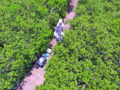 漳江口红树林里,高耸的通量塔宛如烽火台,它们是观测环境的科学利器,可以把红树林碳通量、气象数据等“情报”收集后迅速传送给科学工作者,为开展红树林保护、修复和管理提供依据。