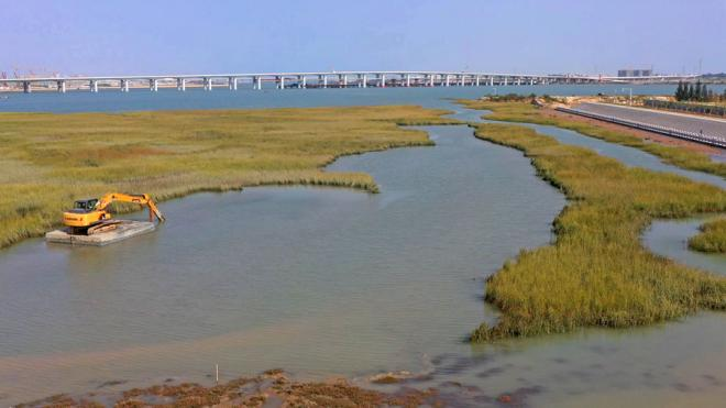 “为保障顺利完成红树林生态修复任务,在项目开工后,我们和各参建单位便立下了项目早竣工、生态早受益的建设使命。”厦门路桥建设集团有限公司九溪口项目经理汤洪说,争分夺秒地与海水赛跑,优化施工方案,助力生态保护修复。